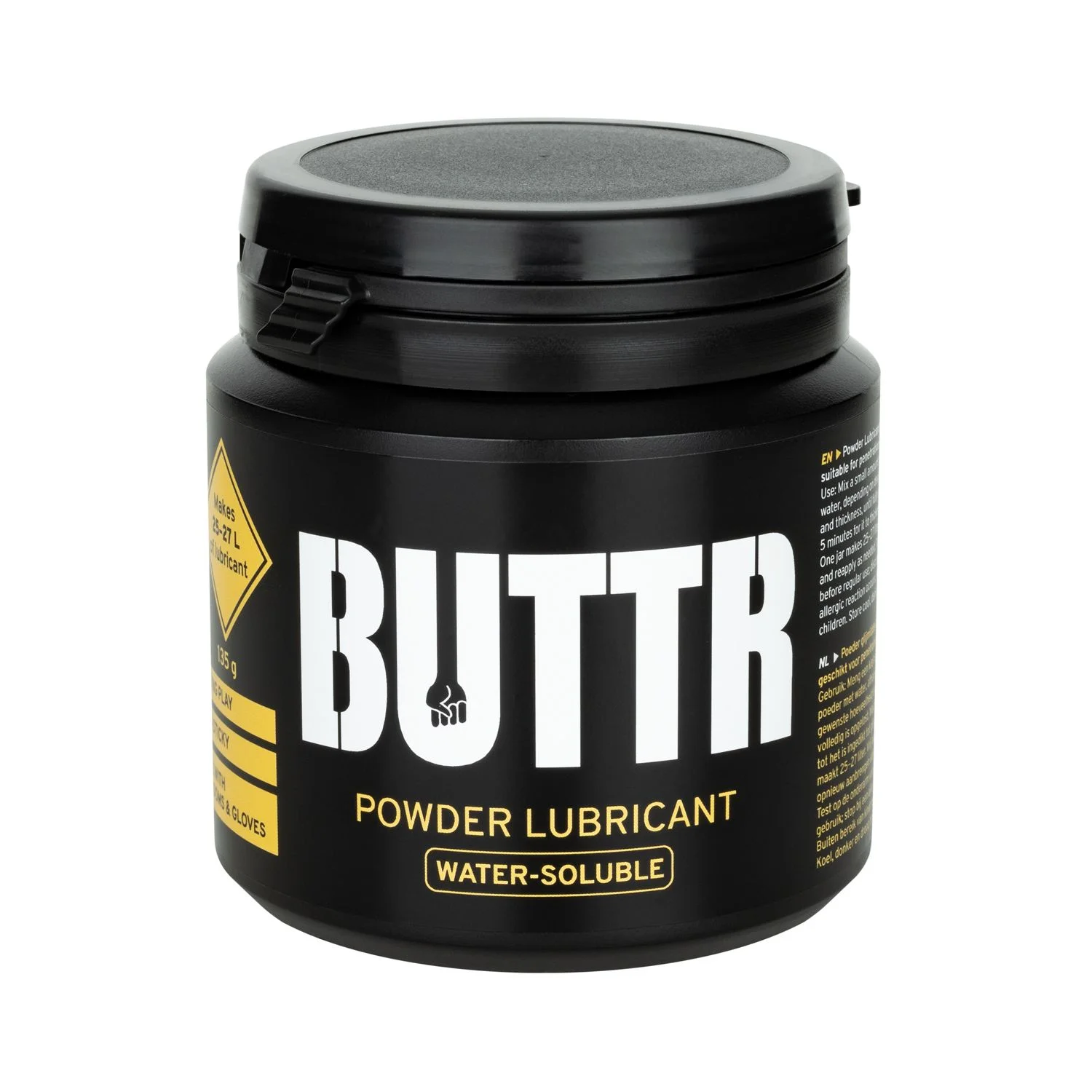 - Beschrijving 135 gram poeder levert verrassend veel glijmiddel op. BUTTR - Powdered Lube Glijmiddel - 135g verandert met water in een gladde gel die je zelf op dikte brengt. Dat maakt dit glijmiddel sterk geschikt voor wie graag controle houdt over structuur en hoeveelheid. Je mengt een kleine portie, wacht ong… Meer