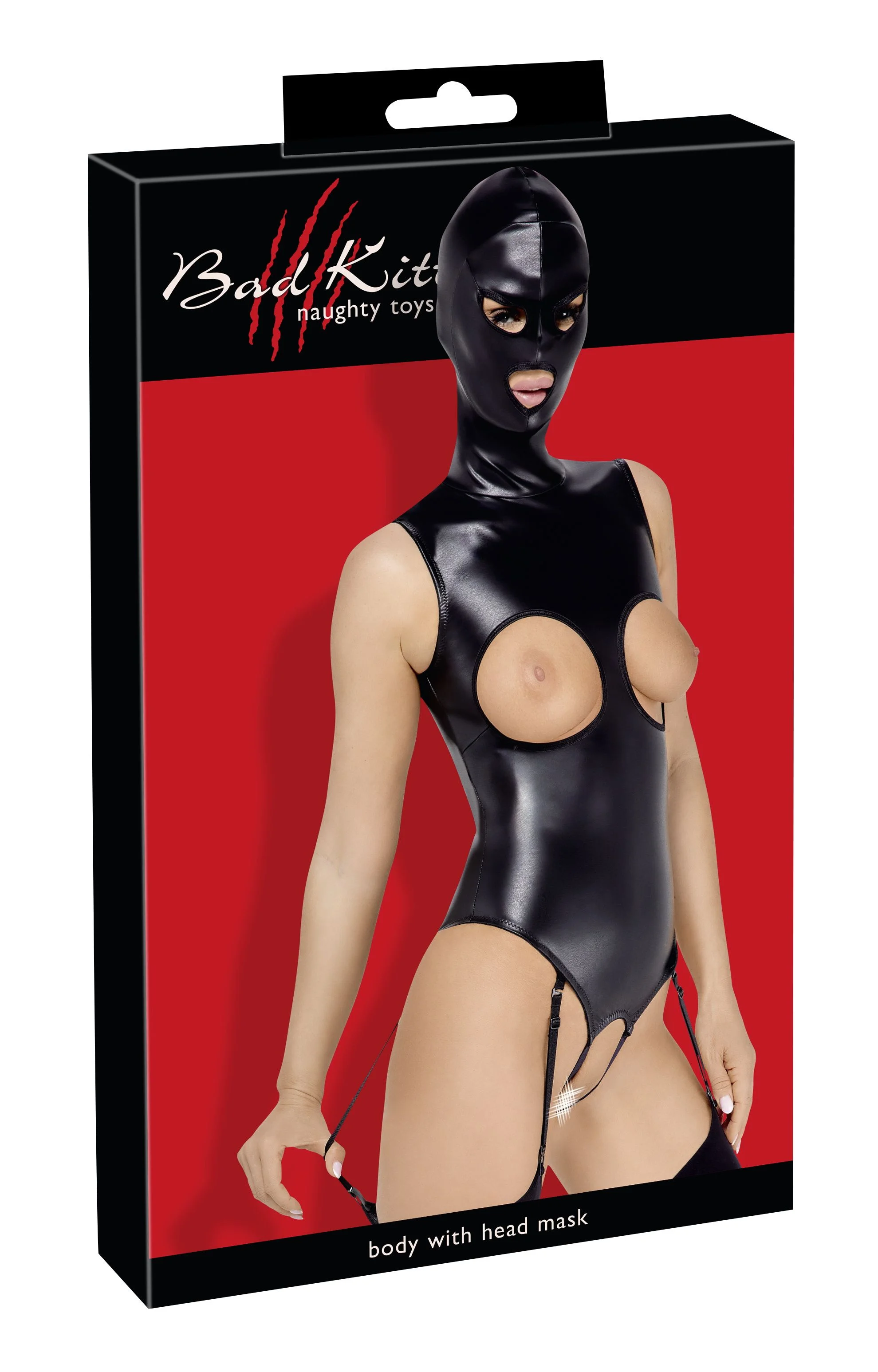 Productinformatie "Bad Kitty – Open Cup Body met Hoofdkap – Zwart"