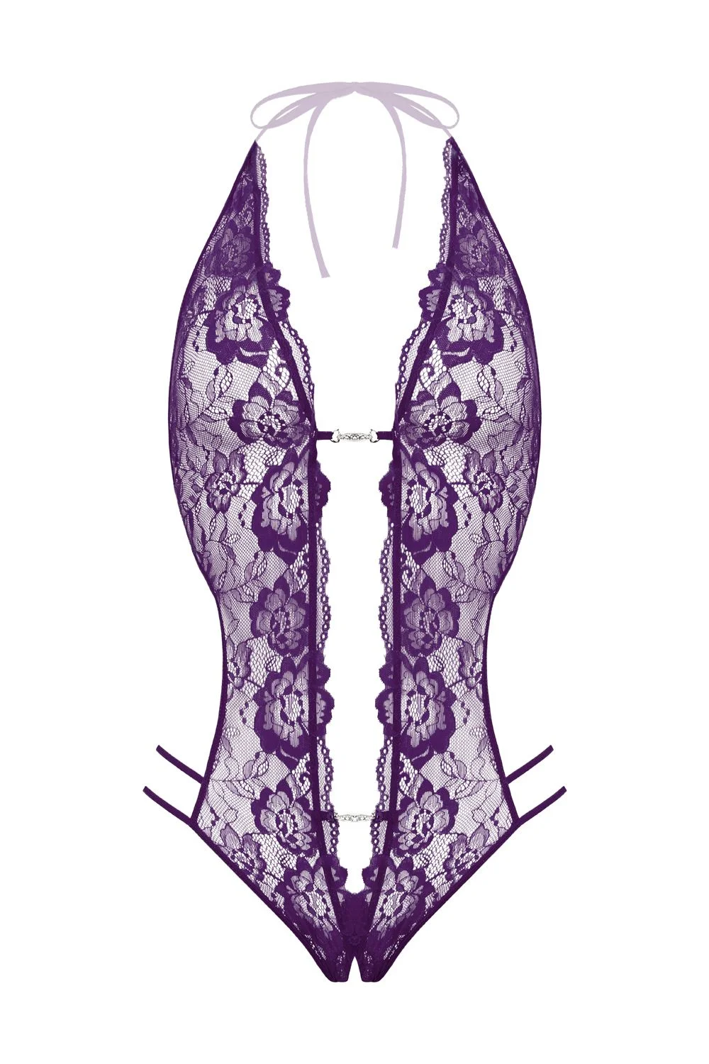 De kanten body Renee valt normaal qua maat en voelt heerlijk comfortabel aan dankzij de elastische bandjes die de rug sieren en zorgen voor een perfecte pasvorm zonder te knellen. De nek sluit met een elegant bandje dat moeiteloos te verstellen is. Extra bijzonder is het subtiele strasjuweel aan de voorkant, zowel bovenaan als onder de borst, dat deze body een sprankelend accent geeft en de aandacht naar de juiste plekken trekt. Het open kruisje maakt deze body bijzonder spannend en verrassend, een echte must-have voor elke vrouw die openstaat voor verleiding en avontuur.