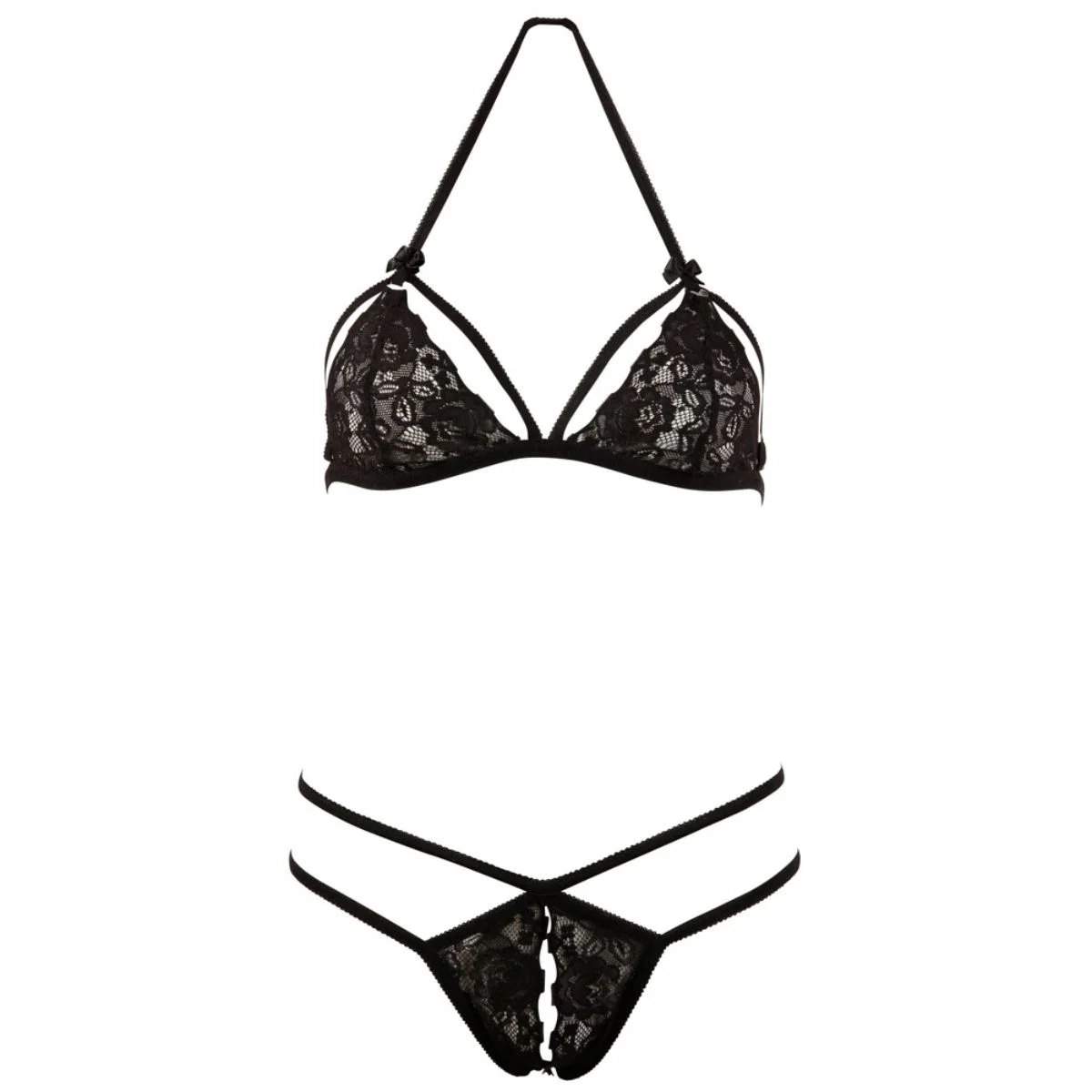 Verrijk je garderobe met de Cottelli Collection - Kanten Set - Zwart en geniet van een combinatie van comfort, stijl en verleiding die speciaal is ontworpen voor vrouwen die iets bijzonders zoeken.