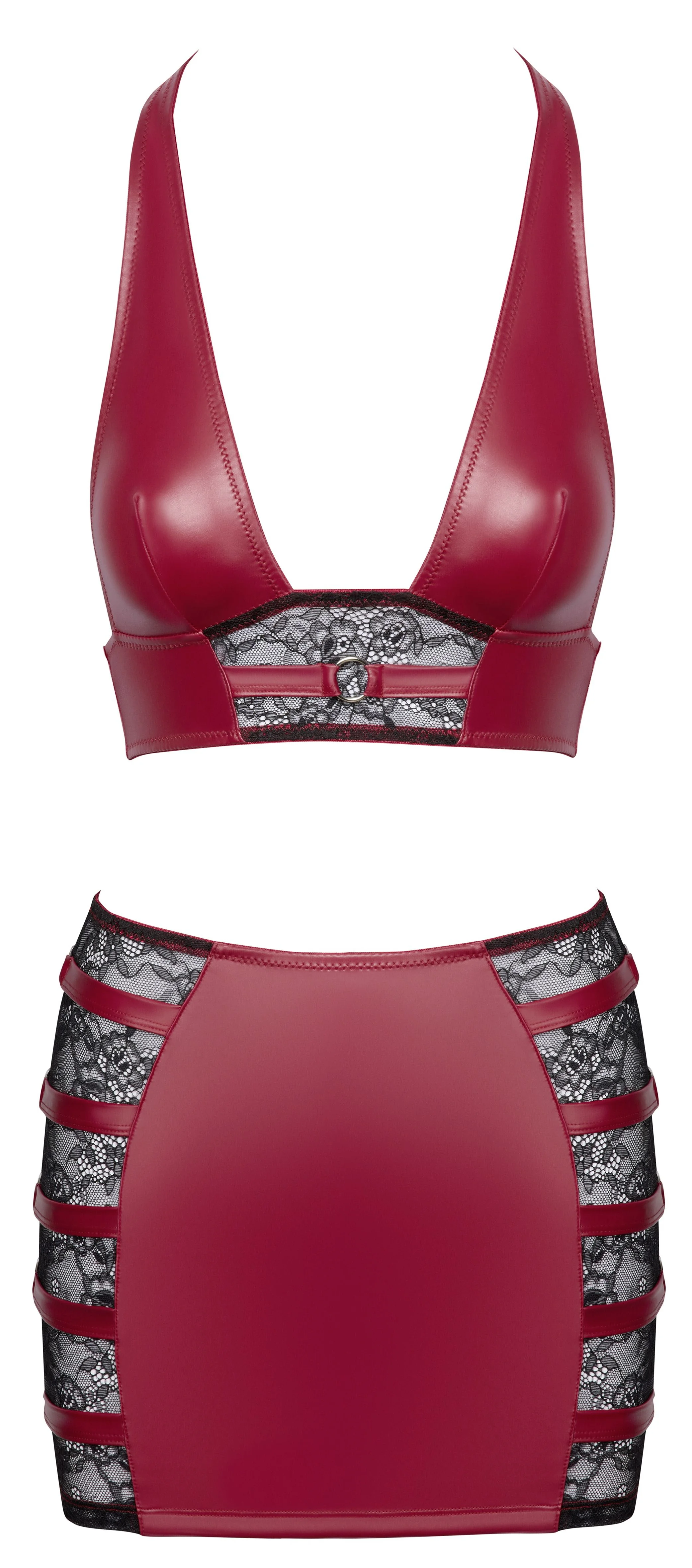 - Set bestaande uit een crop top en mini rok in levendig rood wetlook materiaal