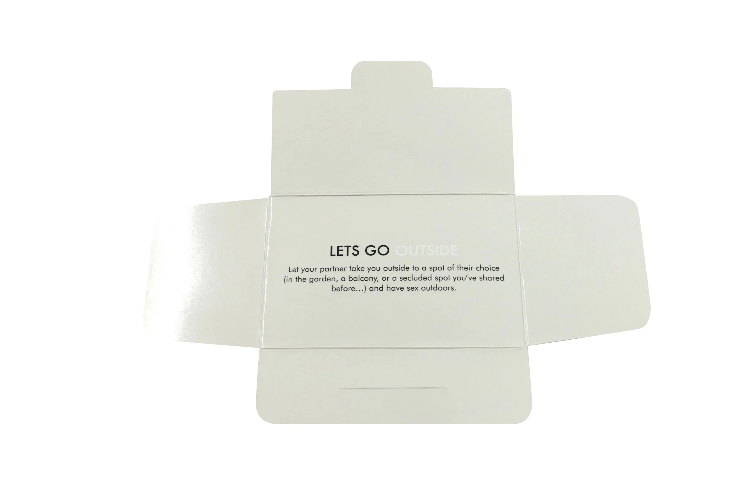 Het handige design van Fifty Days of Play maakt het spel flexibel in gebruik. Speel volgens de regels en laat het toeval beslissen wie de leiding neemt en wie zich overgeeft, of improviseren jullie liever? Stop een envelop stiekem in de tas van je partner, neem er een paar mee voor een spannend weekendje weg, of maak er een spontane actie van op een rustige doordeweekse avond. De gekozen opdrachten variëren van zachte, romantische gebaren tot uitdagende speelse situaties, waardoor het spel perfect is voor koppels die samen willen ontdekken, lachen en genieten zonder ingewikkelde voorbereidingen.