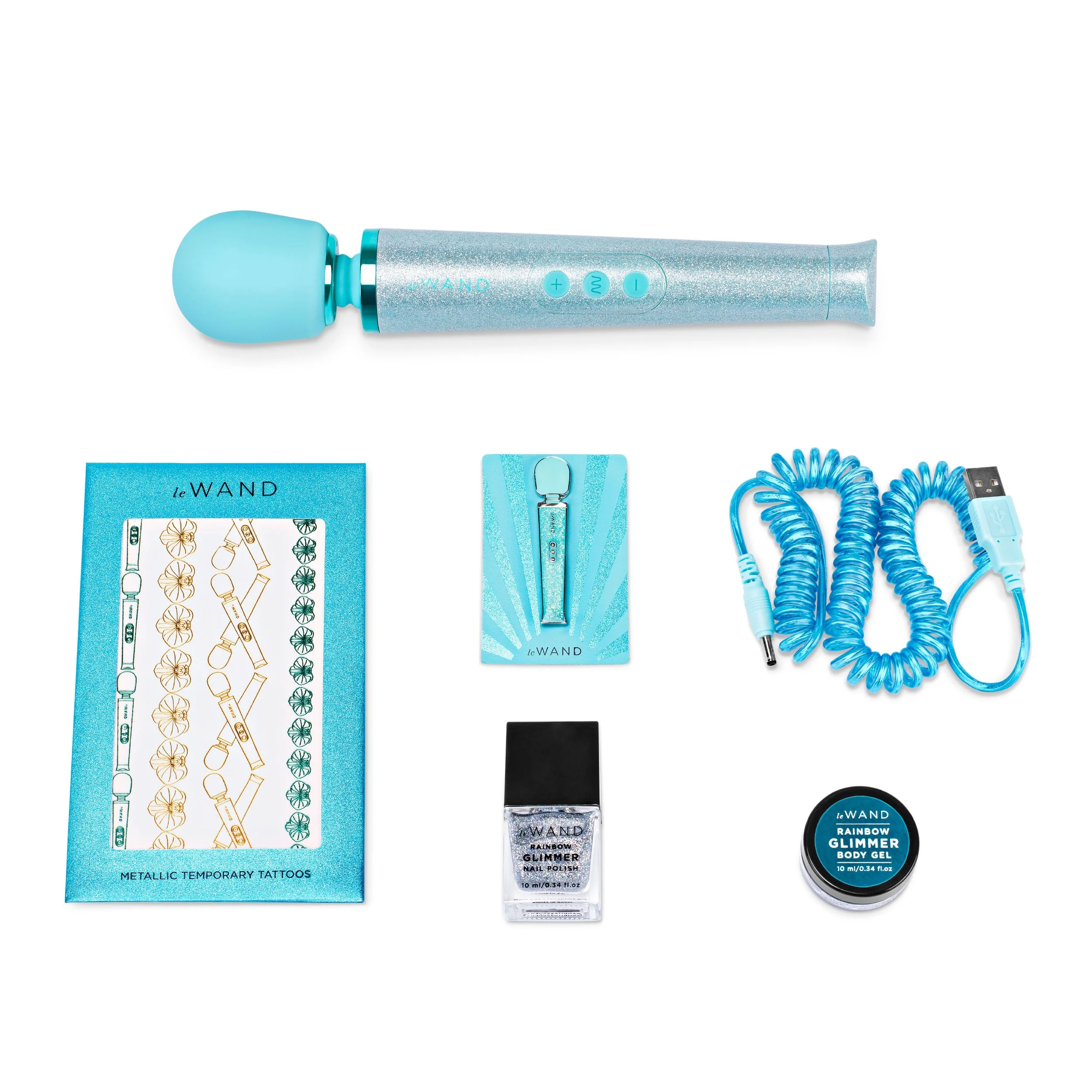 De Le Wand Petite All That Glimmers is uitgerust met een oplaadbare USB-kabel, wat niet alleen milieuvriendelijk is, maar ook handig in gebruik. Dankzij de reisvergrendeling neem je deze vibrator zonder zorgen mee op vakantie of weekendje weg. De set wordt daarnaast geleverd met een schitterende glitterige reisetui, een plezierhandleiding, een enamel pin, Rainbow Glimmer nagellak en een stimulerende bodygel. Daarmee creëer je een volledig verzorgde en luxueuze ervaring.