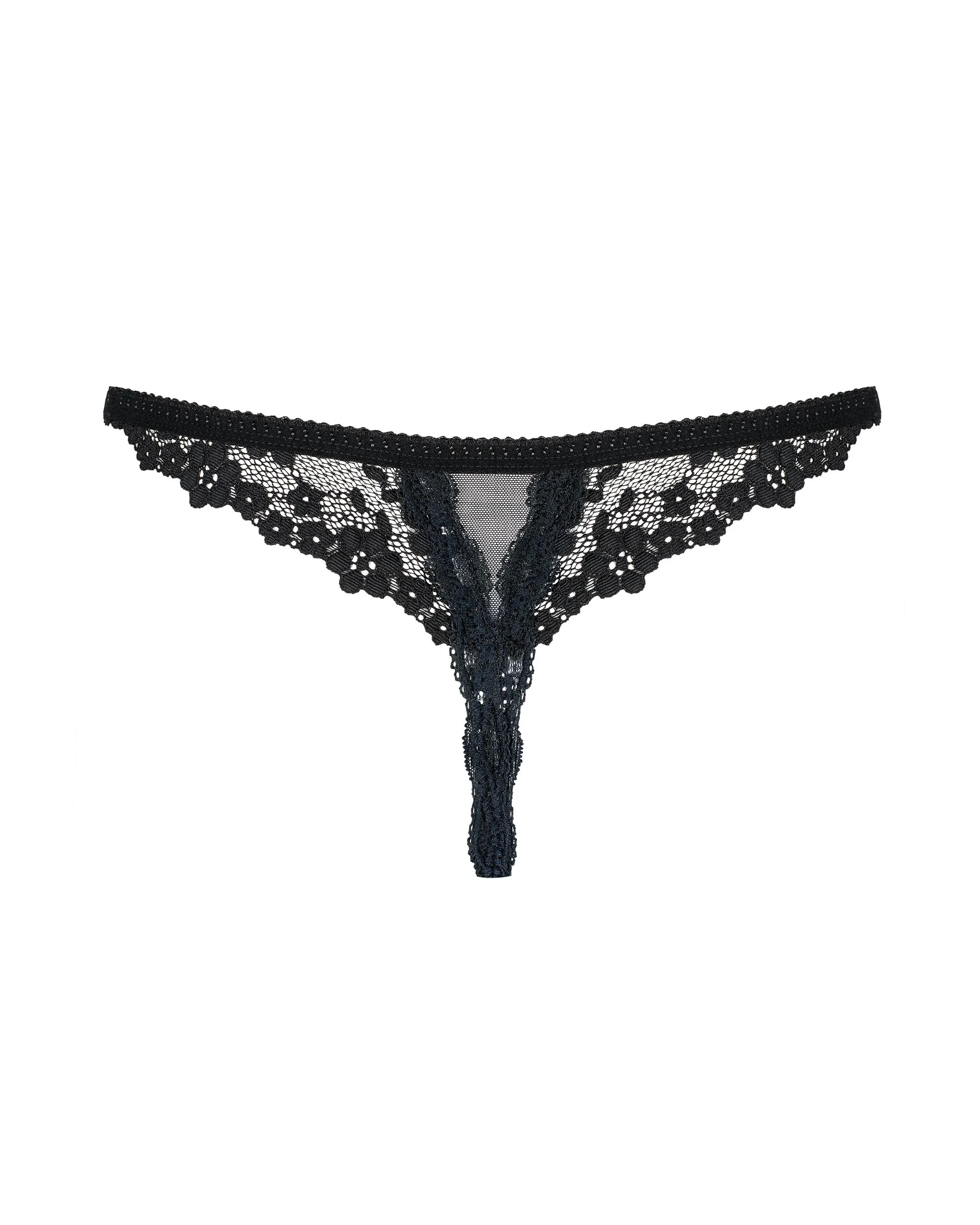 - Zwarte doorschijnende kanten string met open kruisje