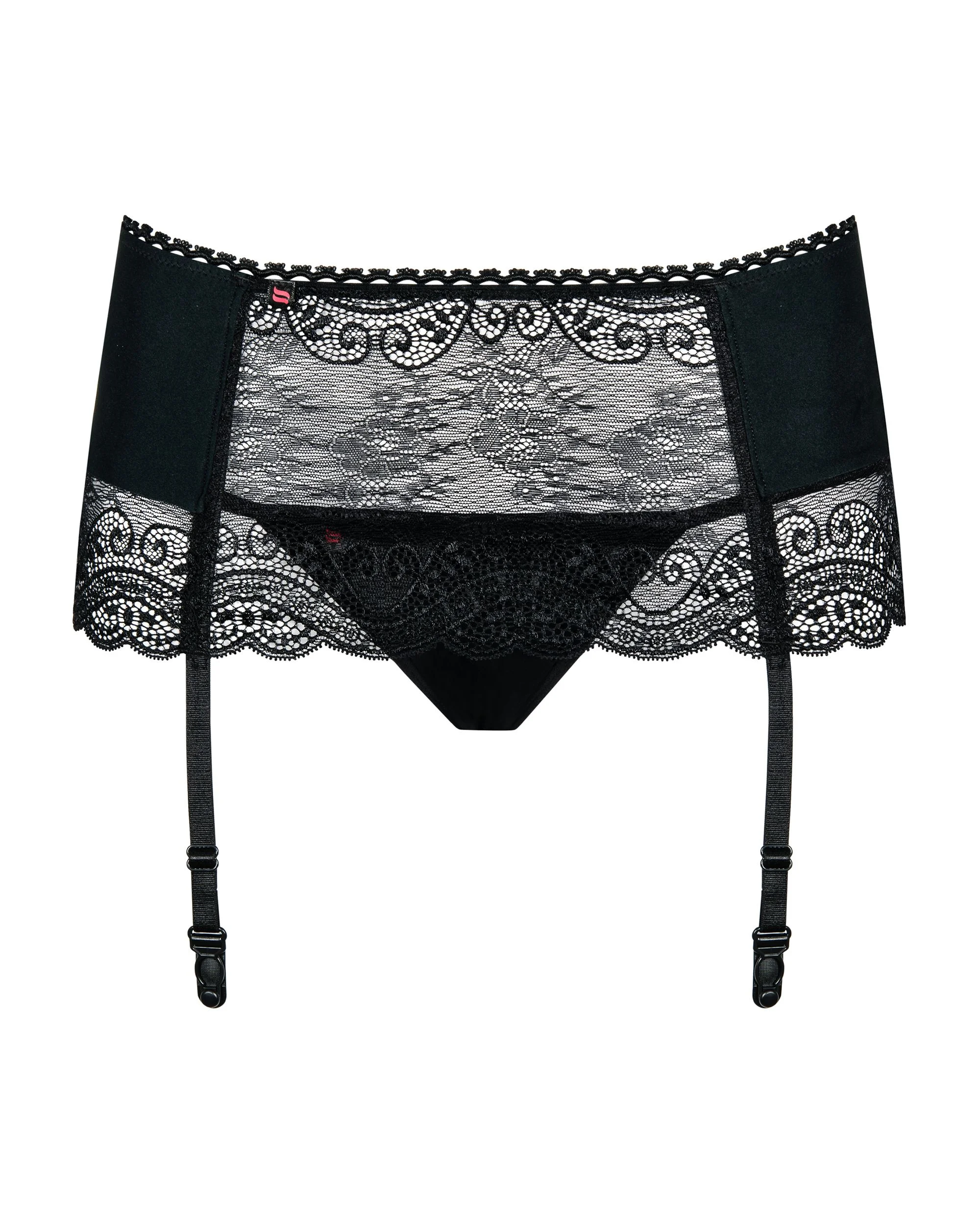 Wat deze jarretelgordel extra bijzonder maakt, zijn de zorgvuldig ontworpen kanten details die een romantische en sensuele uitstraling geven. De jarretelbandjes zijn ruim verstelbaar, waardoor je altijd de ideale lengte kunt vinden voor jouw favoriete paar kousen (kousen niet inbegrepen). De set wordt compleet geleverd met een bijpassende zwarte string die perfect aansluit bij het design van de gordel, waardoor jouw lingerie compleet en smaakvol oogt.