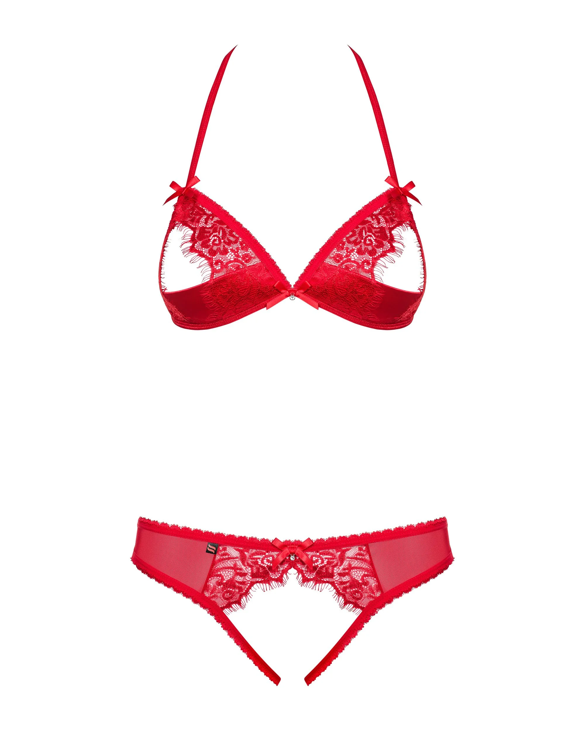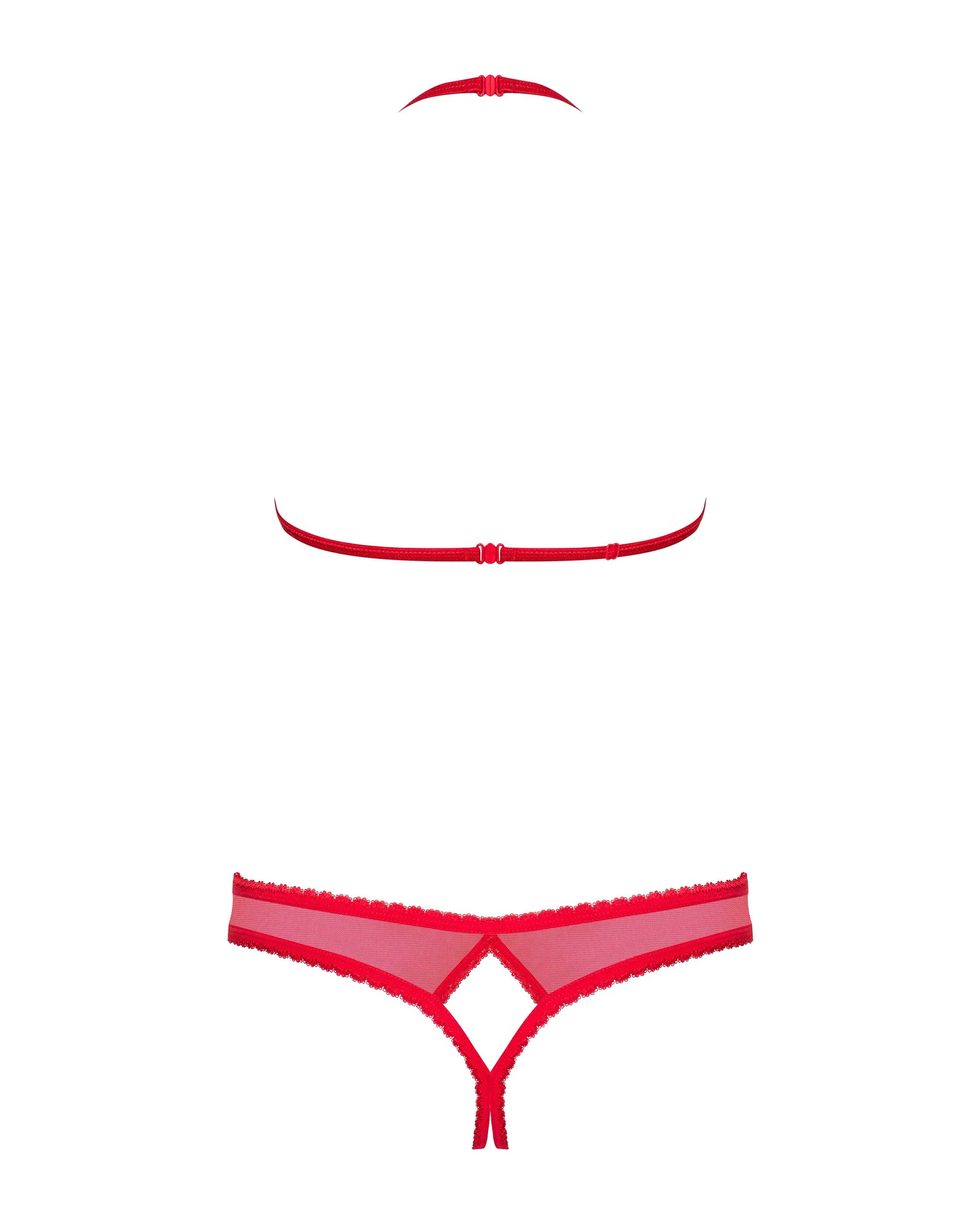 Ontdek de verleidelijke charme van de Obsessive - 870-sec-3 Tweedelige Set - Rood, een sensuele lingerie set die speciaal ontworpen is om jouw vrouwelijke vormen prachtig te accentueren. Deze tweedelige set bestaat uit een open cup BH en een bijpassende kruisloze string, die samen een speelse en uitdagende uitstraling creëren. Dankzij de prachtige rode kleur straal je zelfvertrouwen en passie uit, perfect voor een intieme avond of gewoon om jezelf bijzonder te voelen.