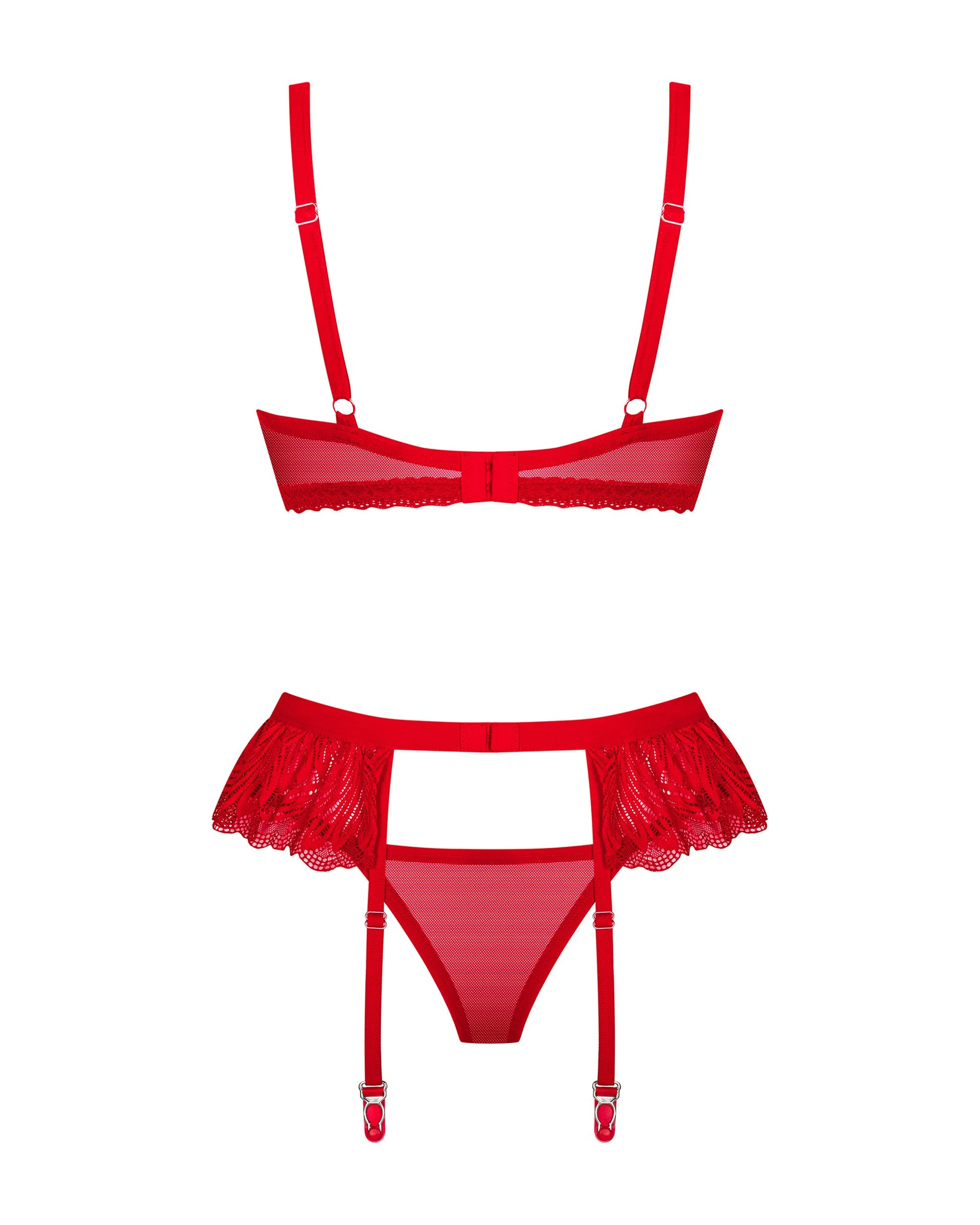 Met de Obsessive - Chilisa Driedelige Set in Rood haal je lingerie in huis die zowel stijlvol als sexy is. Laat jezelf stralen en geniet van een onvergetelijke avond vol passie en elegantie.