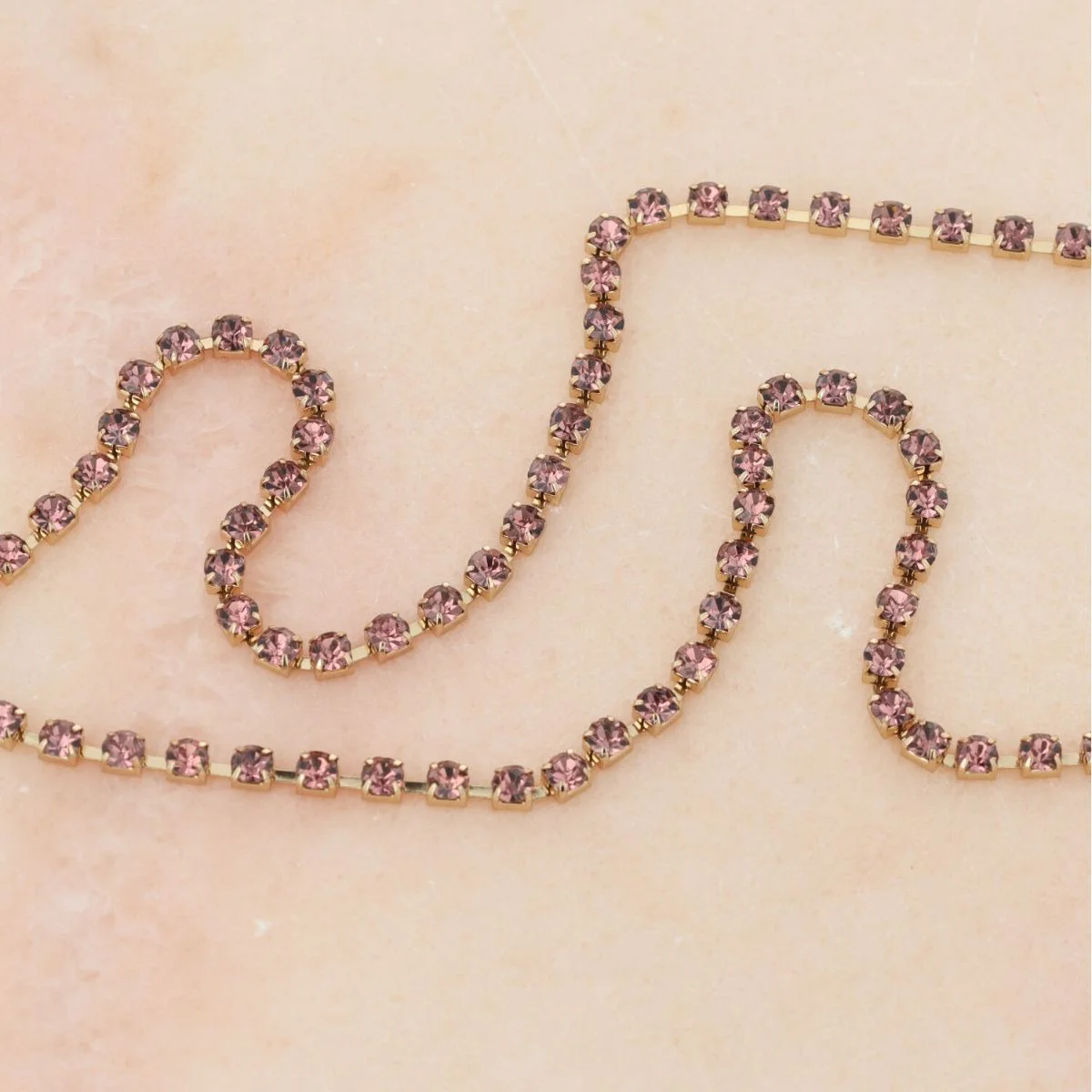 Ontdek de verfijnde allure van de Otazu - Belly Chain Crystal - Amethyst, een prachtig accessoire dat jouw vrouwelijke silhouet op een subtiele en elegante wijze accentueert. Deze belly chain is vervaardigd met aandacht voor detail en combineert hoogwaardige materialen met sprankelende paarse kristallen die schitteren bij iedere beweging. Het slanke ontwerp met zorgvuldig gezette stenen is niet alleen een lust voor het oog, maar voelt ook heerlijk comfortabel aan doordat het soepel langs je taille valt. Dankzij het tijdloze en luxe karakter van deze body ketting voeg je een exclusieve touch toe aan elke outfit, of je nu kiest voor een sensuele look of een zomerse styling.