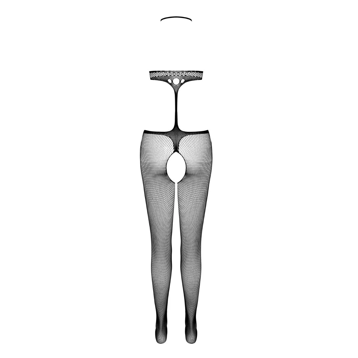 Ontdek de verleidelijke elegantie van de Passion - BS080 Catsuit - Zwart, een bijzonder stuk lingerie dat speciaal ontworpen is voor vrouwen die durven te stralen. Deze catsuit combineert een moderne en sensuele uitstraling dankzij de verfijnde meshstructuur die het lichaam subtiel omlijnt. Het open ontwerp accentueert op een stijlvolle manier de taille en heupen, waardoor jouw vrouwelijke vormen op een natuurlijke en speelse wijze worden benadrukt. De halterstijl aan de bovenzijde voegt een chique touch toe die zeker de aandacht zal trekken tijdens elke gelegenheid.