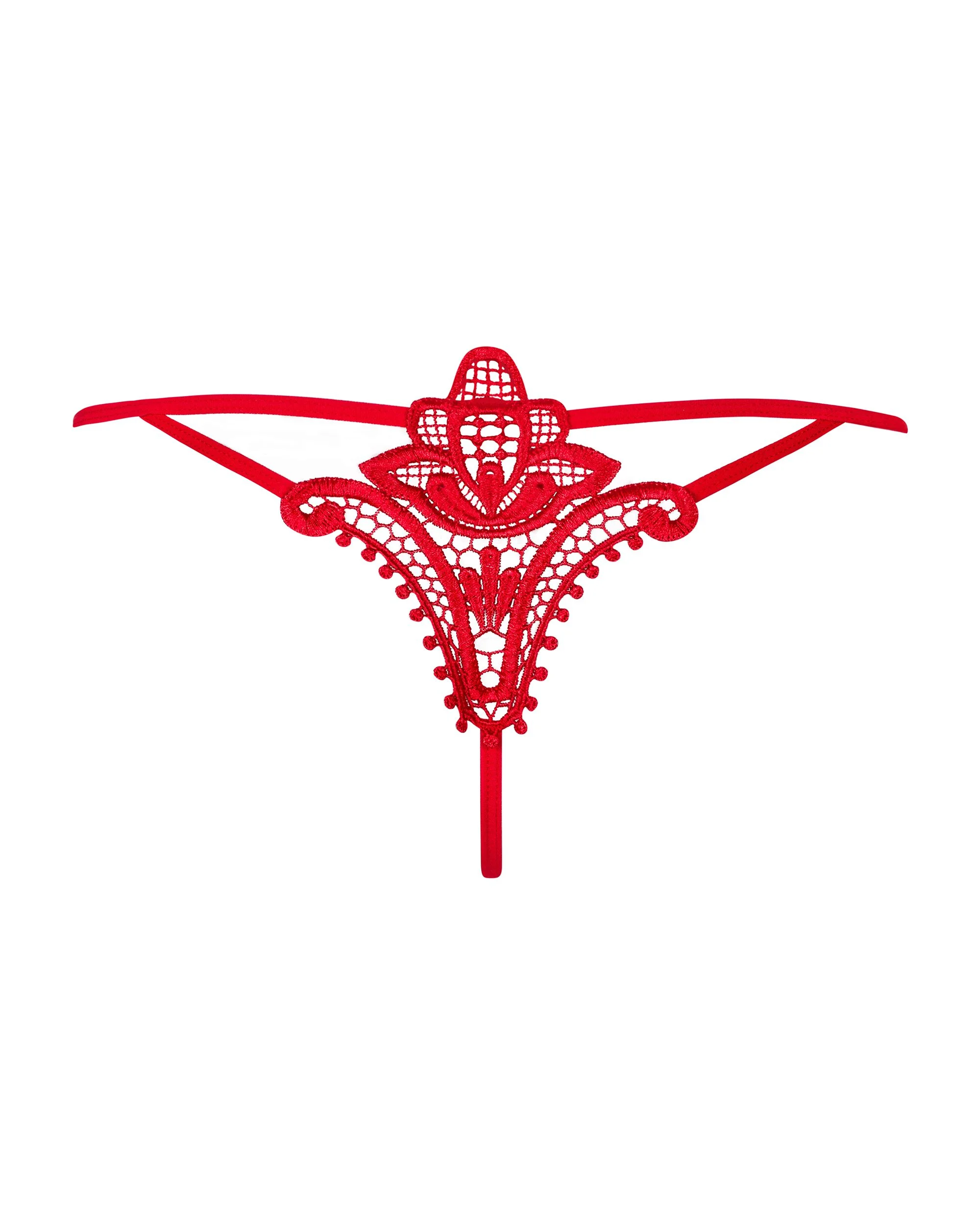 - Beschrijving Ervaar de perfecte combinatie van sensualiteit en comfort met de String Luiza - rood van Obsessive. Deze opvallende string is speciaal ontworpen om jouw rondingen op een elegante en verleidelijke manier te benadrukken. Dankzij de minimale bedekking en de subtiele, dunne bandjes geeft de string je h… Meer