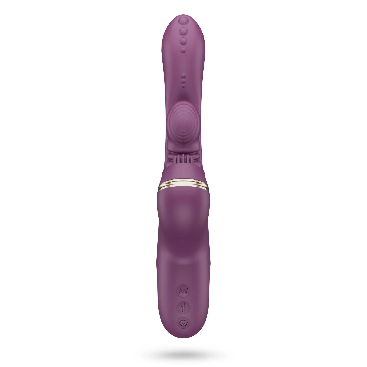 De Vibe Collection - Trio Tap - Multi-functionele Rabbit richt zich specifiek op het gelijktijdig stimuleren van G-spot en clitoris, wat zorgt voor dubbelt genot en intense sensaties. Of je nu alleen bent of samen met een partner, deze rabbit verrijkt jouw intieme momenten met veelzijdige mogelijkheden. Het paarsgekleurde design is niet alleen stijlvol maar ook ergonomisch, waardoor het speeltje prettig in de hand ligt en makkelijk te hanteren is. Door het gebruik van waterbasis glijmiddelen wordt het comfort tijdens gebruik verder vergroot, waardoor elke sessie een plezierige ervaring wordt.