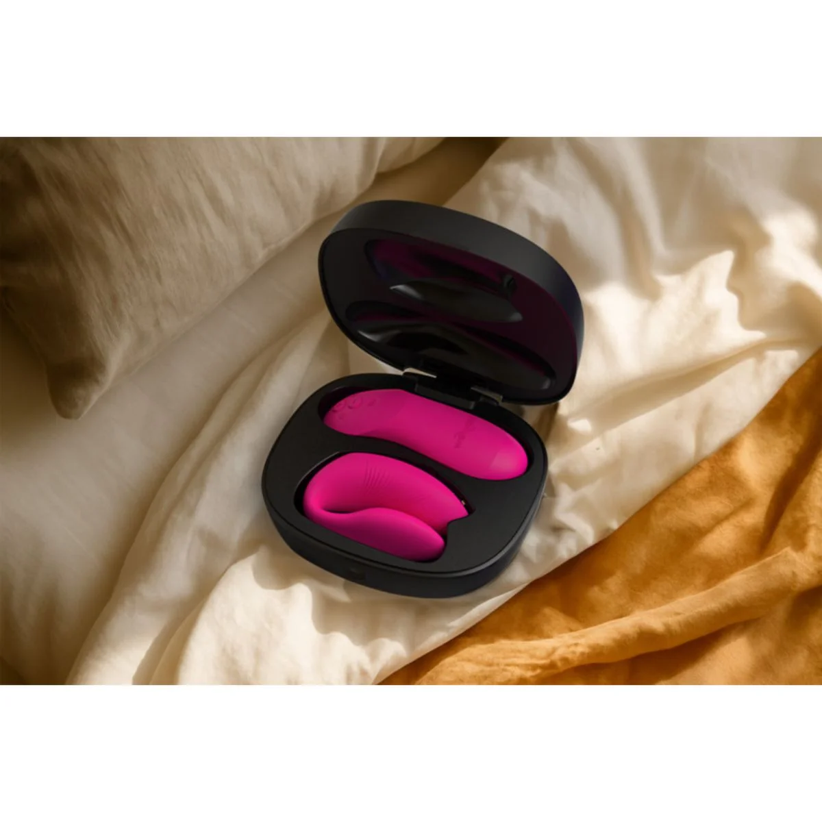 Drie motoren werken hier tegelijk voor gerichte vibratie op twee zones. De koppelvibrator We-Vibe – Chorus Pro – Roze speelt in op clitoris en vagina tijdens solo gebruik of samen. Dat merk je meteen aan het ritme, dat niet vlak blijft maar in golven opbouwt. Daardoor voelt elk patroon levendiger en minder voorspelbaar. Dit model is gemaakt voor koppels die tijdens het samenspel contact willen houden, zonder steeds te stoppen om instellingen te wijzigen. De vorm blijft compact en flexibel, waardoor hij zich makkelijker laat positioneren. Dat geeft meer controle tijdens het dragen. De roze duo vibrator combineert directe prikkeling met bewegingsvrijheid, wat hem geschikt maakt voor wie graag afwisselt tussen rustig opbouwen en krachtiger vibraties.