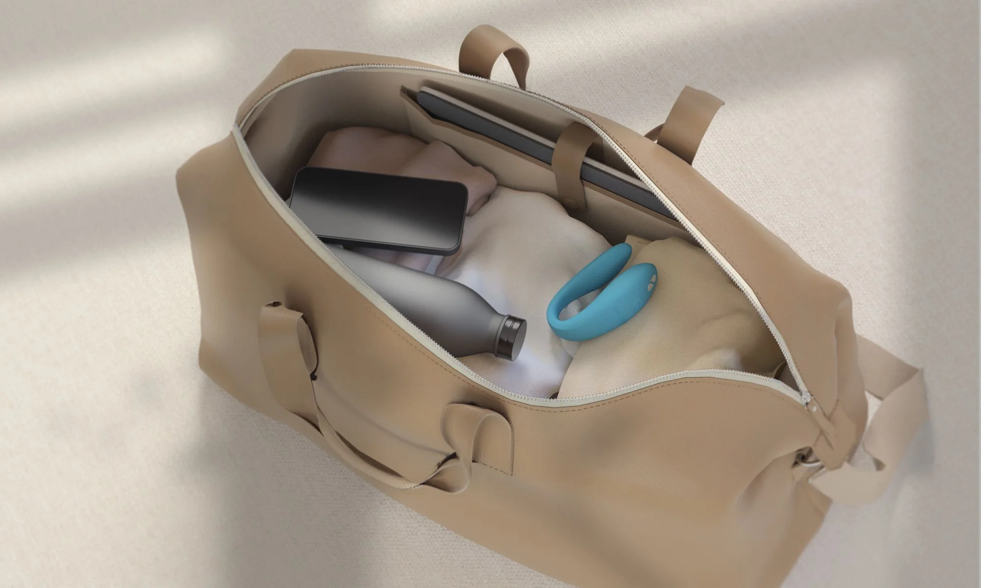 De bediening past zich aan jullie moment aan. Je wisselt eenvoudig tussen de knop op het speeltje zelf en aansturing via een app. Dat geeft vrijheid thuis, op reis of wanneer jullie niet op dezelfde plek zijn. Via de app stel je patronen samen of kies je een stand die bij jullie ritme past. Zo maak je van deze koppel vibrator een speelser onderdeel van contact op afstand, zonder dat het gebruik onnodig technisch voelt. Het compacte ontwerp is ook handig onderweg, mede dankzij de meegeleverde travel case. De turkooizen afwerking geeft het geheel een frisse uitstraling. Omdat dit model spatwaterdicht is, maak je het na gebruik bovendien vlot schoon. Voeg een glijmiddel op waterbasis toe voor soepel gebruik.
