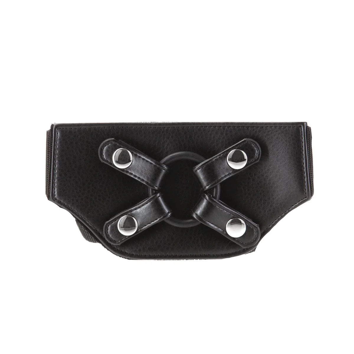 Imitatie lederen strap-on harnas met 3 verwisselbare ringen. Leef je spannendste fantasieën uit met dit verstelbare zwarte strap-on harnas! Het materiaal is elastisch voor optimaal draagcomfort en past de meeste maten. De O-ring komt met 3 verwisselbare ringen zodat bijna elke dildo perfect zal passen. Dit harnas is daarnaast voorzien van een ingebouwd compartiment voor een bullet vibrator. Deze uitneembare bullet wordt meegeleverd en geeft intense clitoris stimulaties aan de drager.