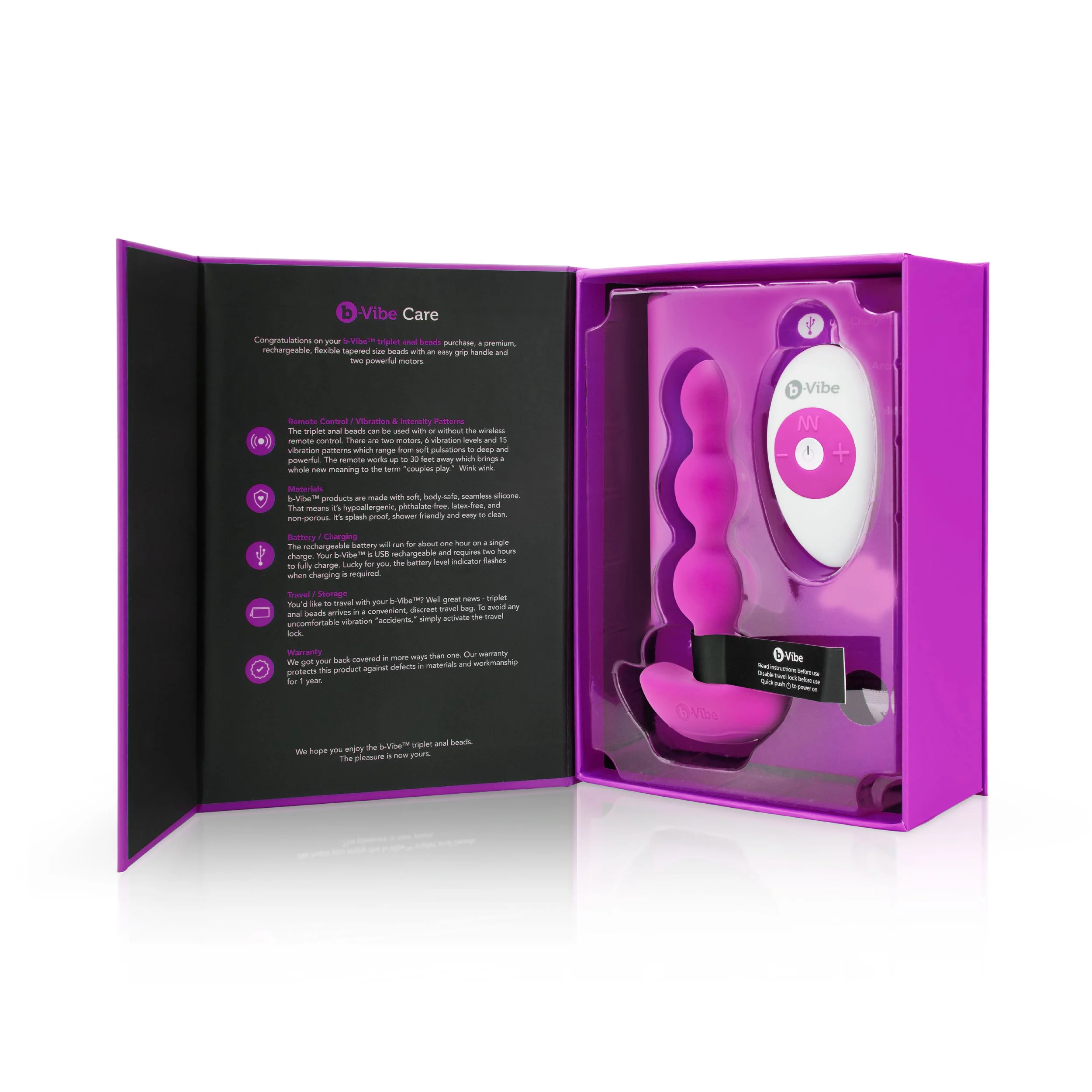 - Beschrijving Drie taps toelopende kralen geven deze vibrator direct een rustige opbouw. De B-Vibe - Triplet Anale Kralen Fuchsia begint slank en bouwt geleidelijk op naar meer vulling, waardoor je stap voor stap kunt verkennen wat bij je past. Dat maakt dit model sterk voor starters die graag controle houden, m… Meer
