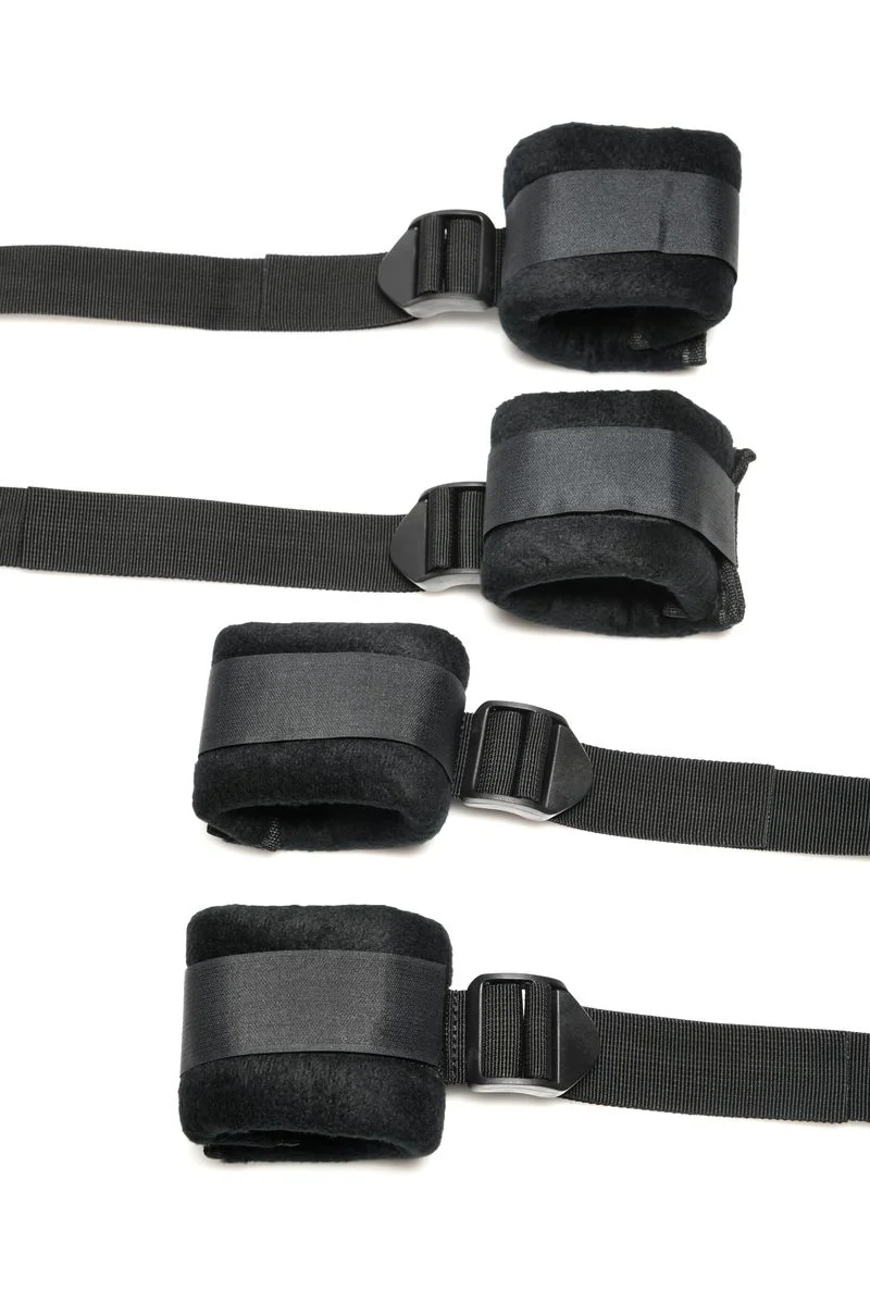 De pols- en enkelboeien zijn gemaakt van zacht polyester, waardoor ze de hele nacht aangenaam en comfortabel aanvoelen, zelfs bij langdurig gebruik. Dankzij de volledig verstelbare banden en boeien bepaal je zelf de perfecte lengte en strakheid, zodat je altijd een secure, maar zachte pasvorm ervaart. Het handige klittenbandsysteem maakt het eenvoudig om de banden los of vast te maken, zodat je snel kunt wisselen tussen verschillende posities en intensiteiten. Dit maakt het bedsysteem flexibel en perfect afgestemd op jullie wensen.