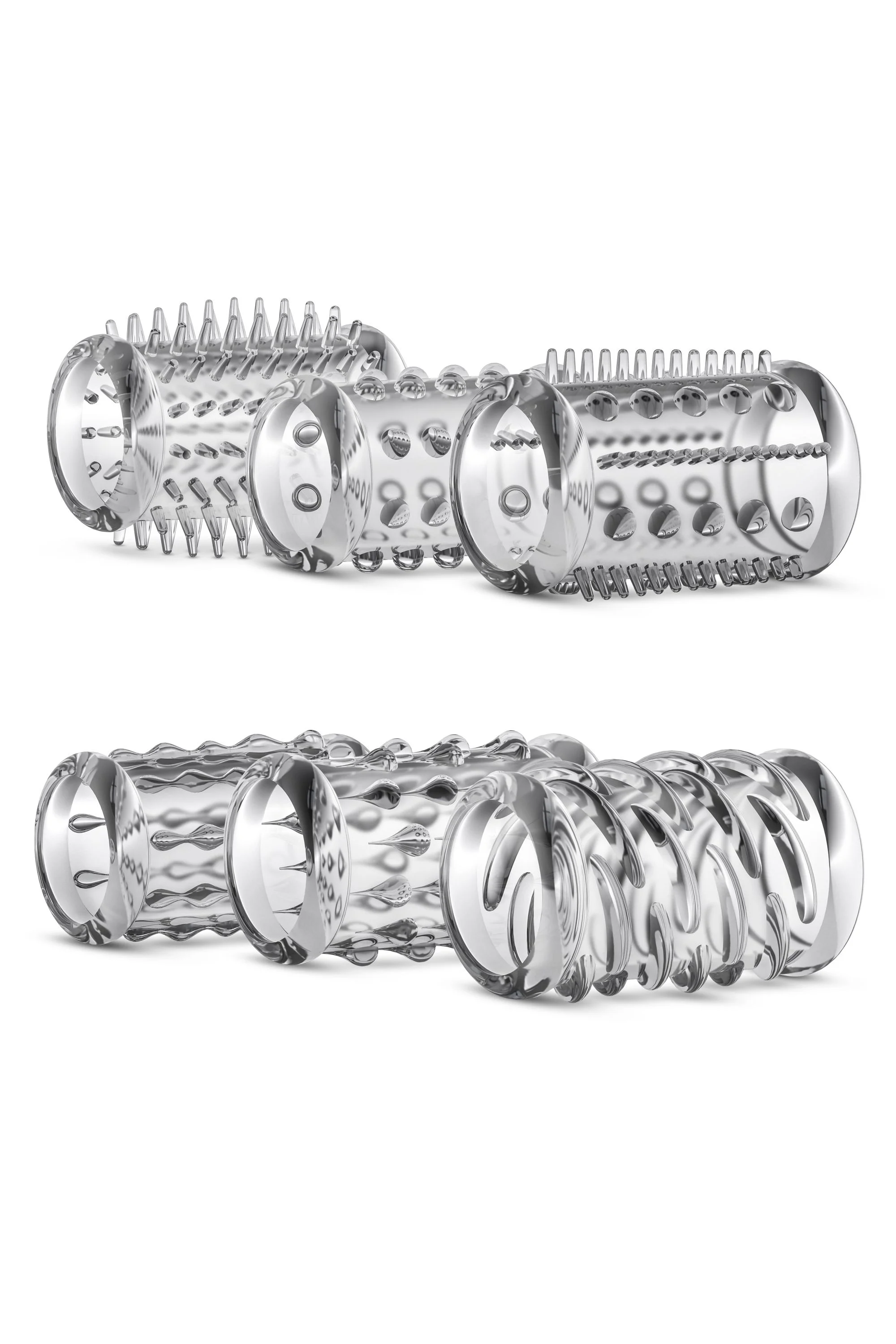 Deze penis sleeve set is ideaal voor mannen die hun masturbatie of sekservaringen willen verrijken, maar ook voor koppels die hun spel samen willen intensiveren. Door de veelzijdigheid en het soepele materiaal passen de sleeves zich moeiteloos aan jouw wensen en voorkeuren aan, voor iedere sessie een ander gevoel. De transparante uitstraling benadrukt het natuurlijke contact, terwijl de unieke structuren zorgen voor extra stimulatie en plezier.