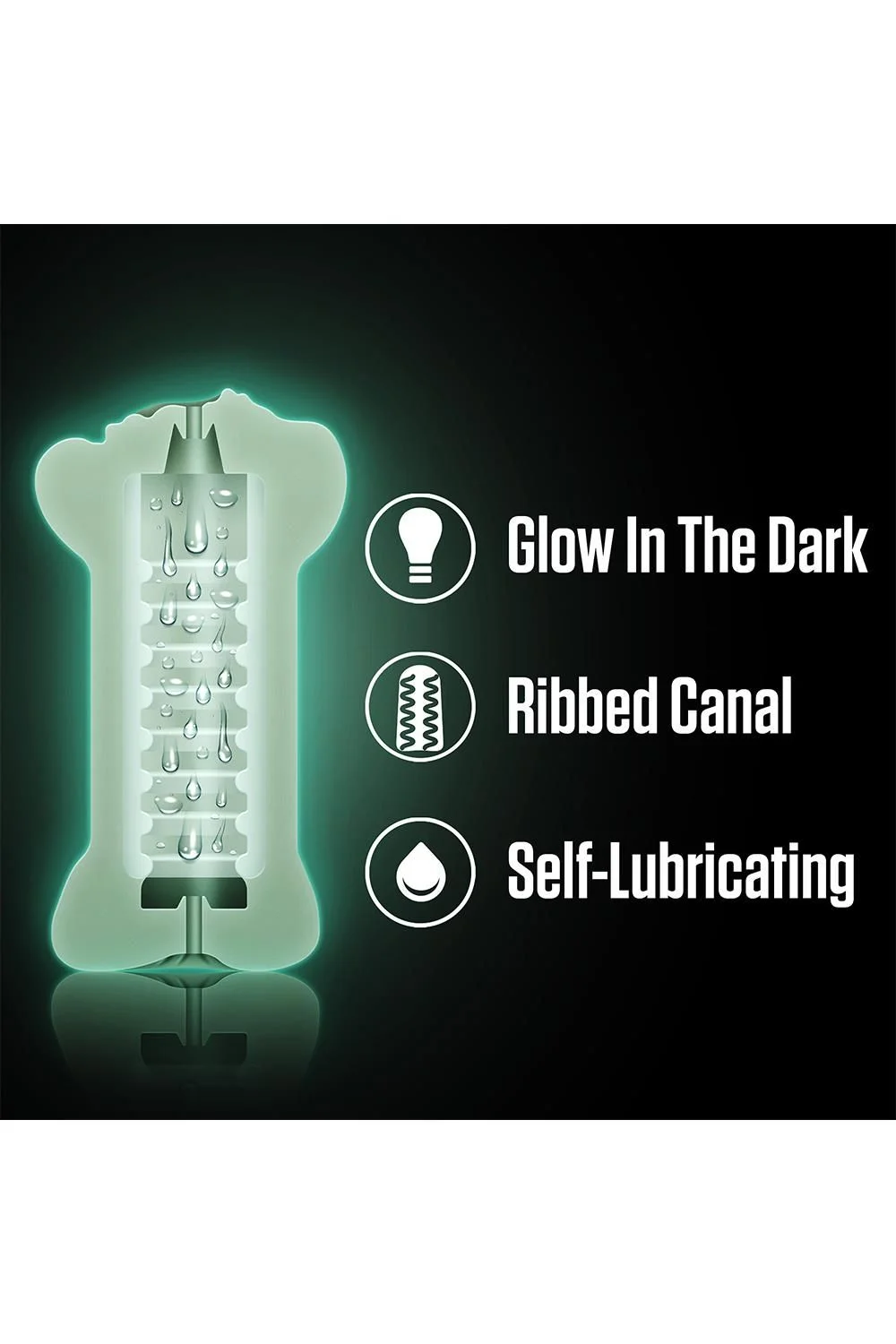 Wat deze masturbator echt uniek maakt, is het tweezijdige gebruik met twee verschillende openingen: een geribbelde en levensechte vagina en een stimulerende anus. Beide openingen hebben een interne structuur bestaande uit noppen en ribbels, voor extra prikkeling en afwisseling tijdens het gebruik. Dankzij het glow-in-the-dark materiaal krijgt je speeltje een speelse uitstraling in het donker, wat de intimiteit en het plezier een extra dimensie geeft. Ideaal voor beginners die op zoek zijn naar afwisseling en comfort, en eenvoudig te combineren met een waterbasis glijmiddel voor optimale soepelheid.
