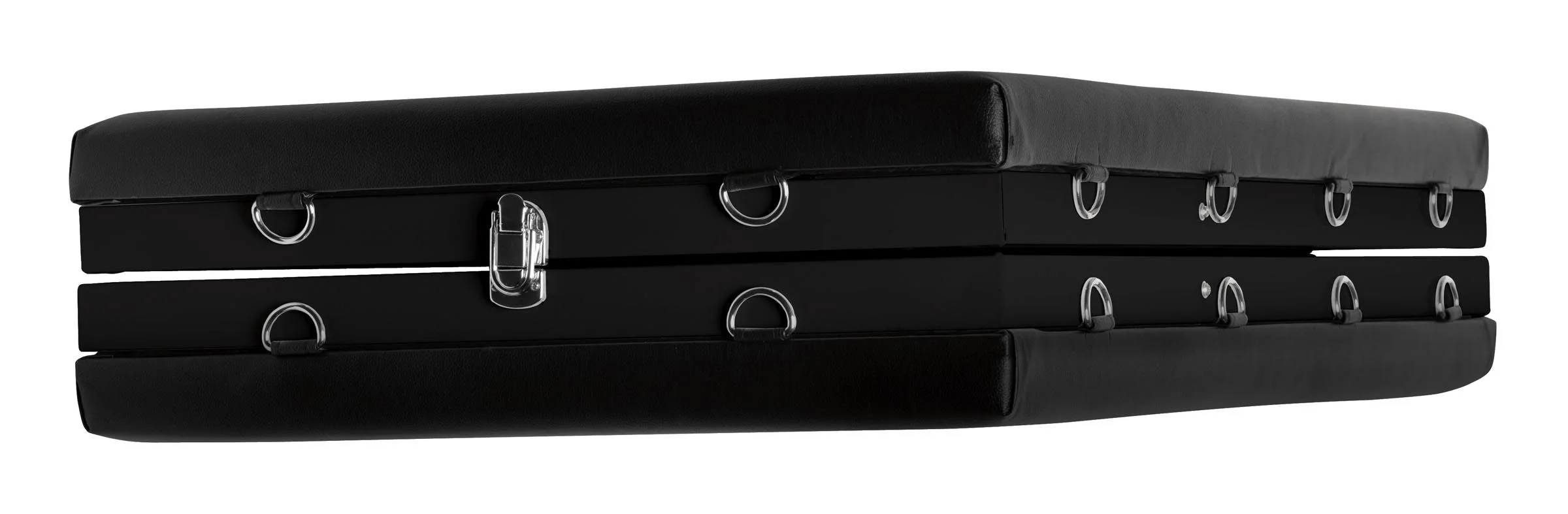 Til jullie bondagespel naar een next level met dit multifunctionele en kwalitatieve massage bed! Het bed heeft een stevige constructie en een uitvouwbaar onderstel. Het liggedeelte heeft een comfortabele padding en 2 geïntegreerde gaten voor gezicht en kruis. Zo kan de dominant overal makkelijk bij en is de onderdanige volledig overgeleverd aan diens aanrakingen. Het bed is makkelijk in te klappen zodat je deze indien nodig, discreet op kunt bergen. Deze set wordt met een set verstelbare boeien geleverd die je op diverse plekken aan het bed vast kunt maken: kies uit de 20 O-ringen en dwing de onderdanige in verschillende posities.