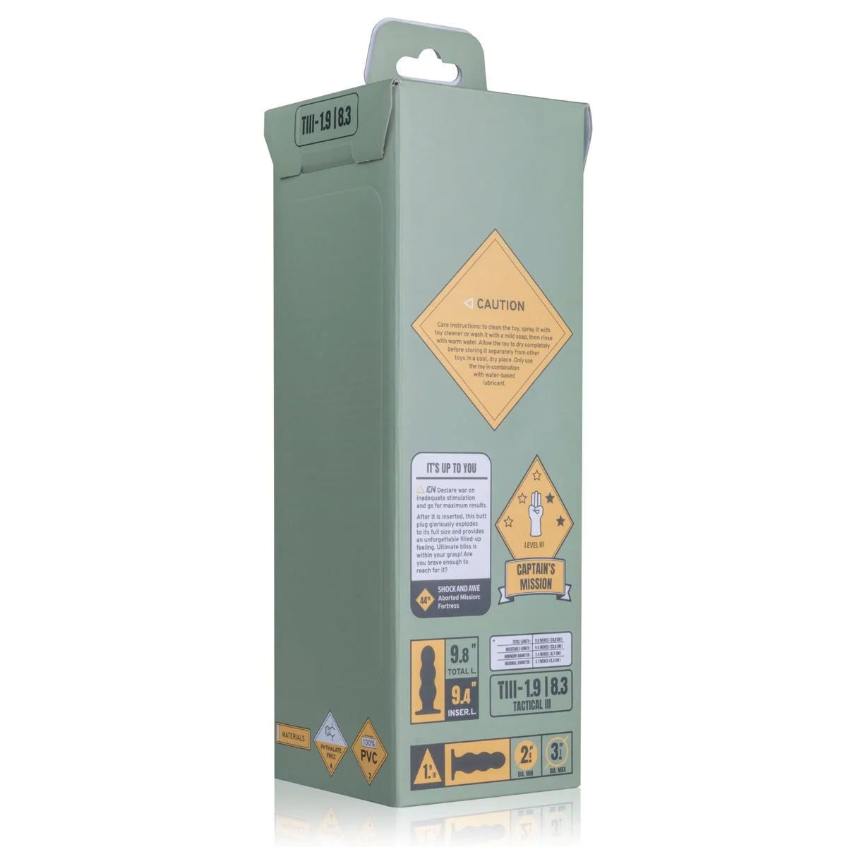 De Tactical III is speciaal ontworpen voor mensen met ervaring en biedt een alternatief voor wie overstapt op grotere maten maar niet op comfort wil inleveren. Met een invoerdiepte van 238 millimeter en een golvende schacht die varieert in diameter tussen 53 en 83 millimeter, ben je verzekerd van een intense en prettige sensatie. De hoogwaardige afwerking en het gladde materiaal combineren uitstekend met een waterbasis glijmiddel. Zo glijdt de plug soepel en veilig in en buiten, zonder irritaties of ongemakken.