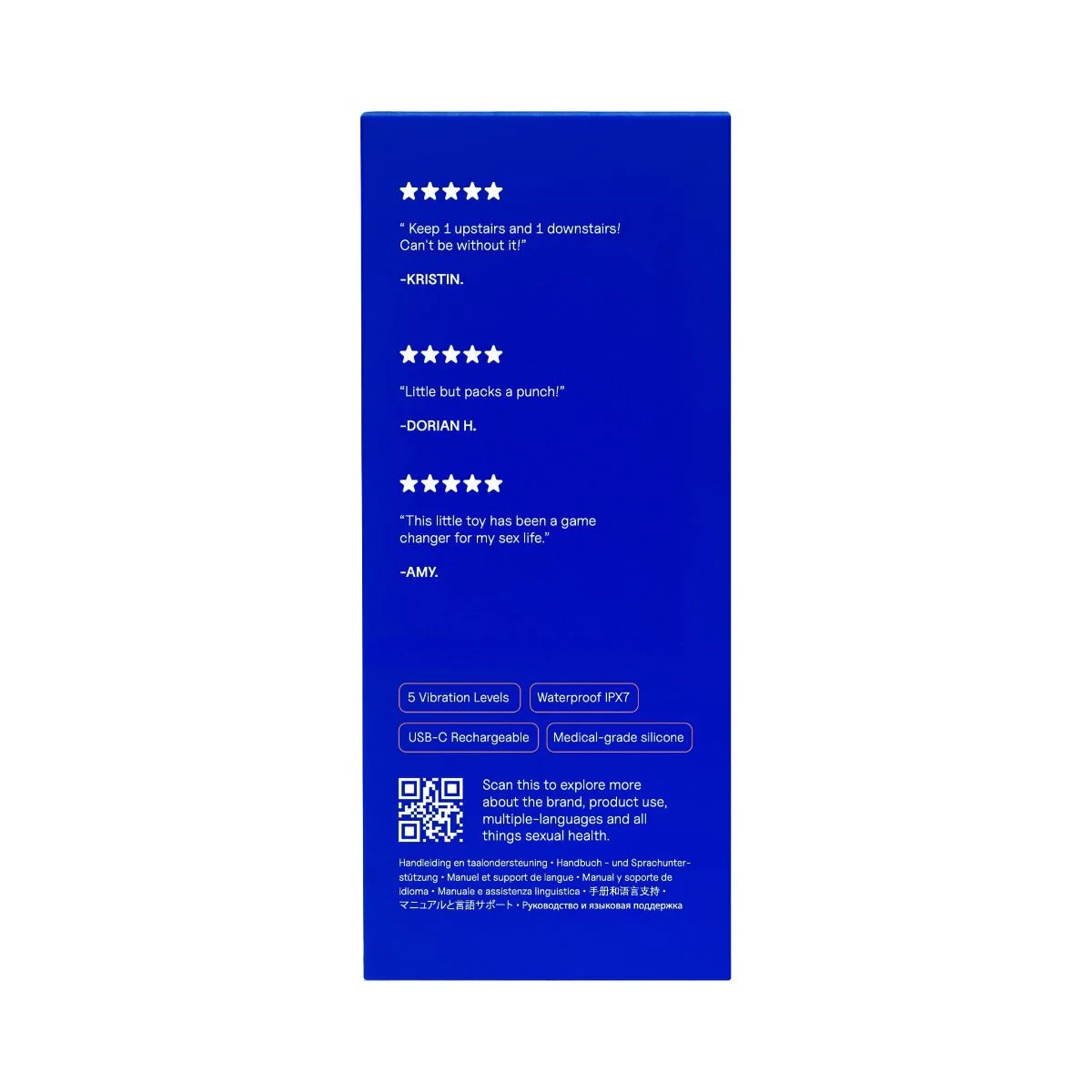 - Body-safe silicone/ABS, 30+ min batterij.