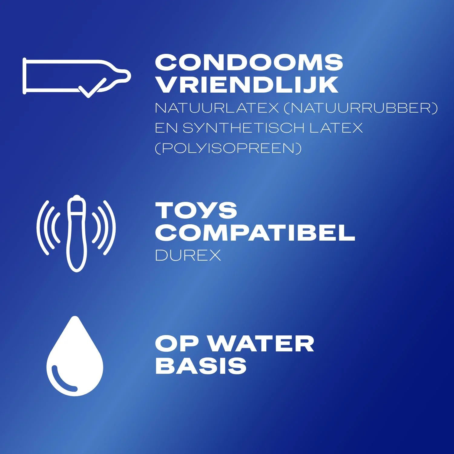 - Veilig voor latex condooms