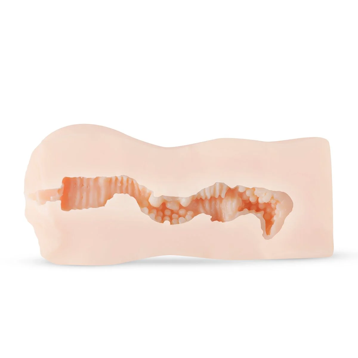 Het materiaal is erg prettig: zacht en flexibel. Ook ziet de masturbator er aan de buitenkant goed uit! Echter valt de textuur aan de binnenkant mij een beetje tegen: de textuur is niet erg diep en vooral veel aan het oppervlakte. Zodra je dus iets te veel glijmiddel gebruikt is daar niet idioot veel meer van te voelen.