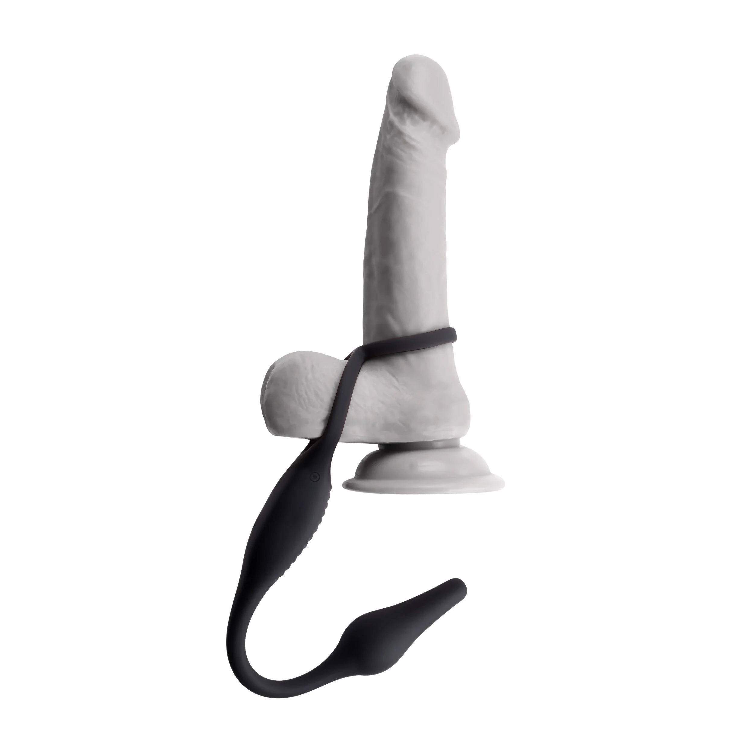 De Evolved Novelties - Plug & Tug - Zwart is de perfecte keuze voor wie zijn plezier wil uitbreiden met een degelijk, multifunctioneel speeltje van hoogwaardige kwaliteit. Ervaar nieuwe sensaties en geniet van optimaal comfort en langdurig plezier met deze veelzijdige combinatie van vibrerende plug en penisring.