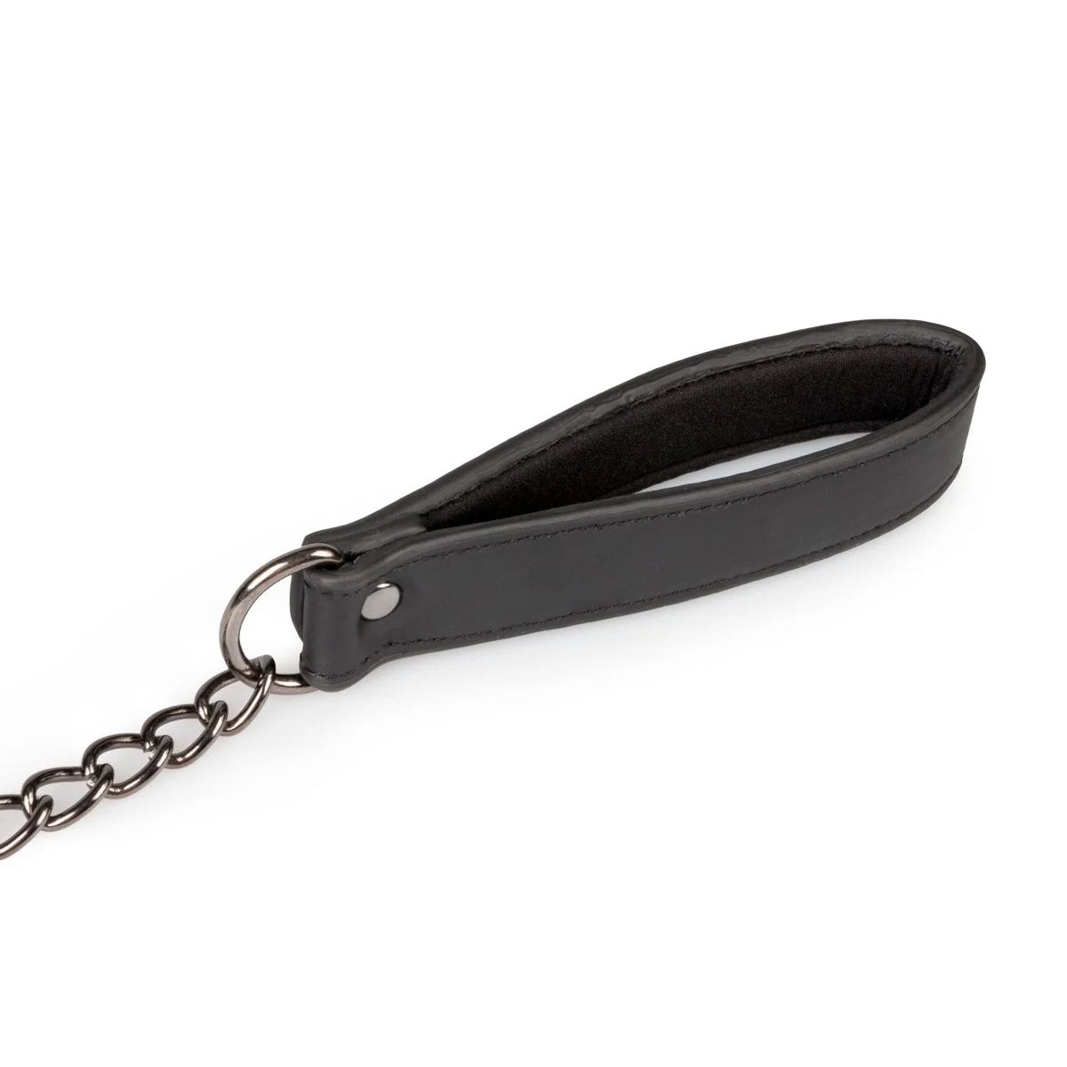 Hou je sub altijd in de buurt met deze bondagehalsband met riem. Hij is gemaakt van metaal en stevig kunstleer gevoerd met schuim, dus hij kan ruw gebruik aan en is tegelijkertijd comfortabel in gebruik. De halsband is verstelbaar van 35 tot 53 cm voor een goede pasvorm. De riem is vastgemaakt aan de halsband met clipsluitingen, dus je kan ze gemakkelijk van elkaar losmaken en ze vastmaken aan andere speeltjes, zoals handboeien, harnassen en tepelklemmen. Dit zorgt voor eindeloze mogelijkheden en een creatieve en persoonlijke bondage-ervaring.
