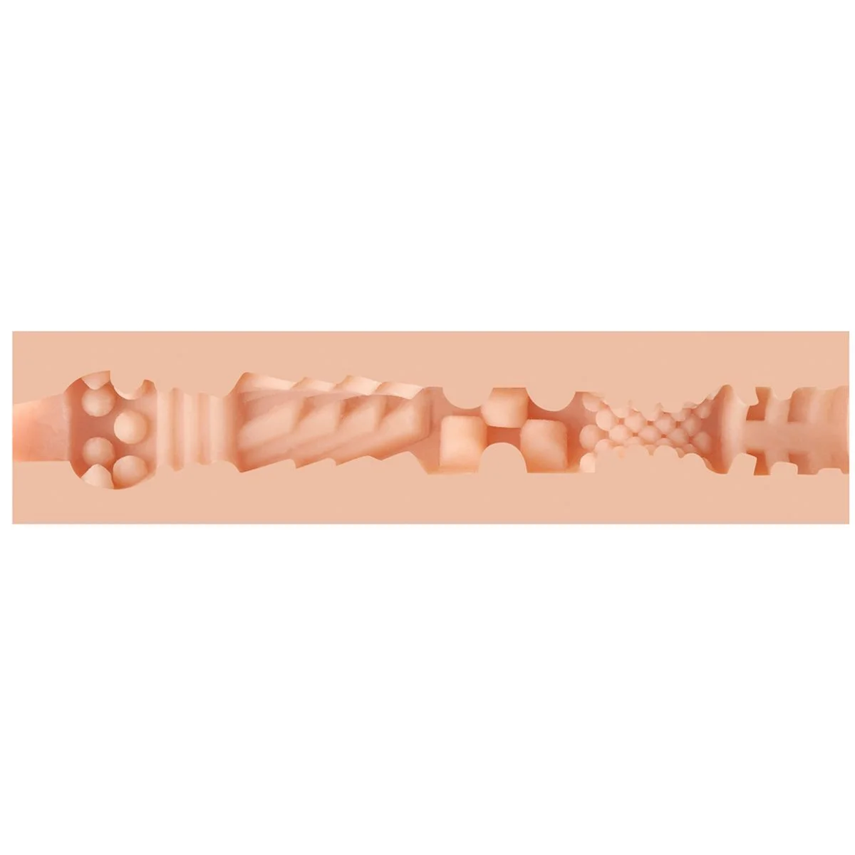 Ook deze fleshlight heeft intern een uniek patroon die uiteraard zorgt voor een ander gevoel vergeleken met de andere fleshlights. Het is moeilijk te vergelijken zonder ze allemaal op een rijtje te leggen dus in de werkelijkheid zul je waarschijnlijk niet meteen het verschil merken tussen de fleshlights. En elk patroon kan een verschillend effect hebben op verschillende geslachtsdelen.