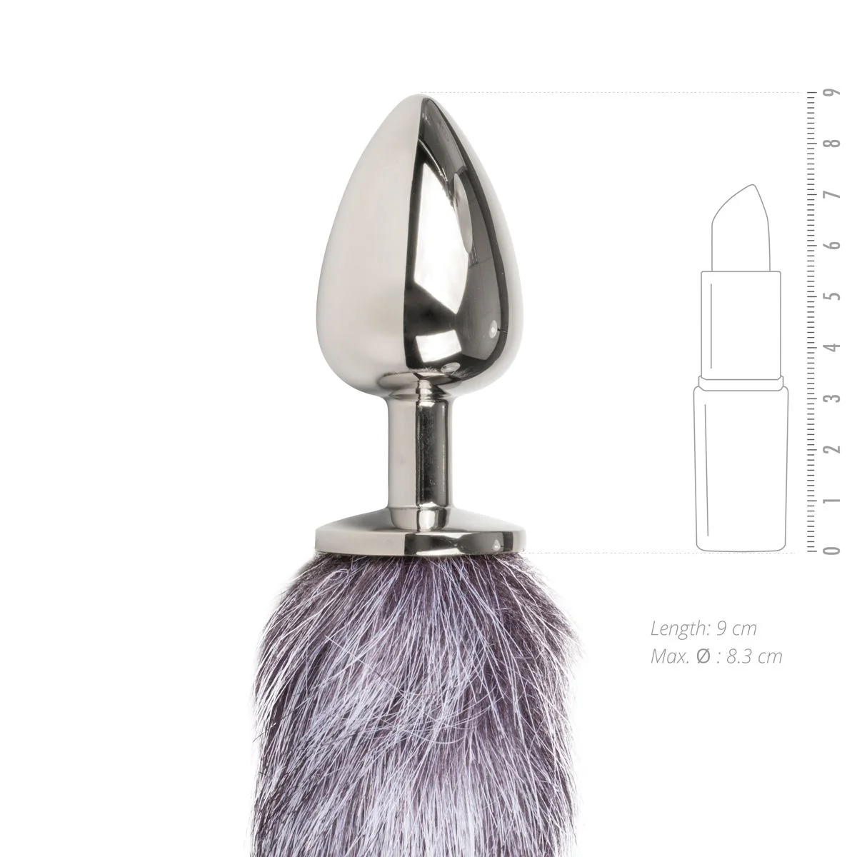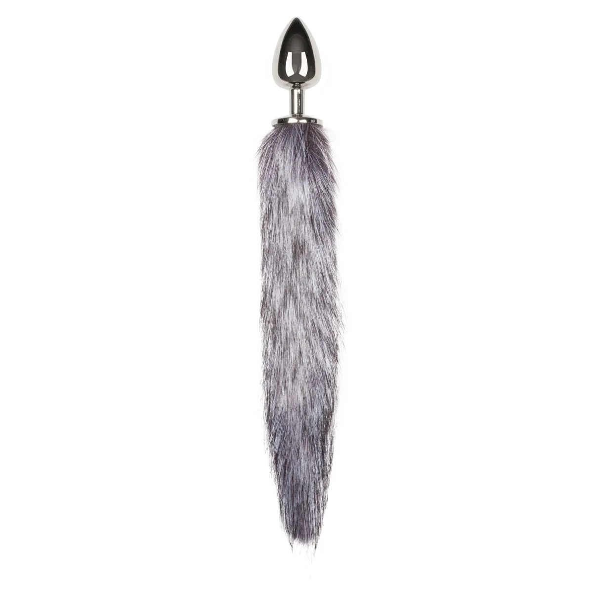 Grote zilverkleurige buttplug met grijze vossenstaart