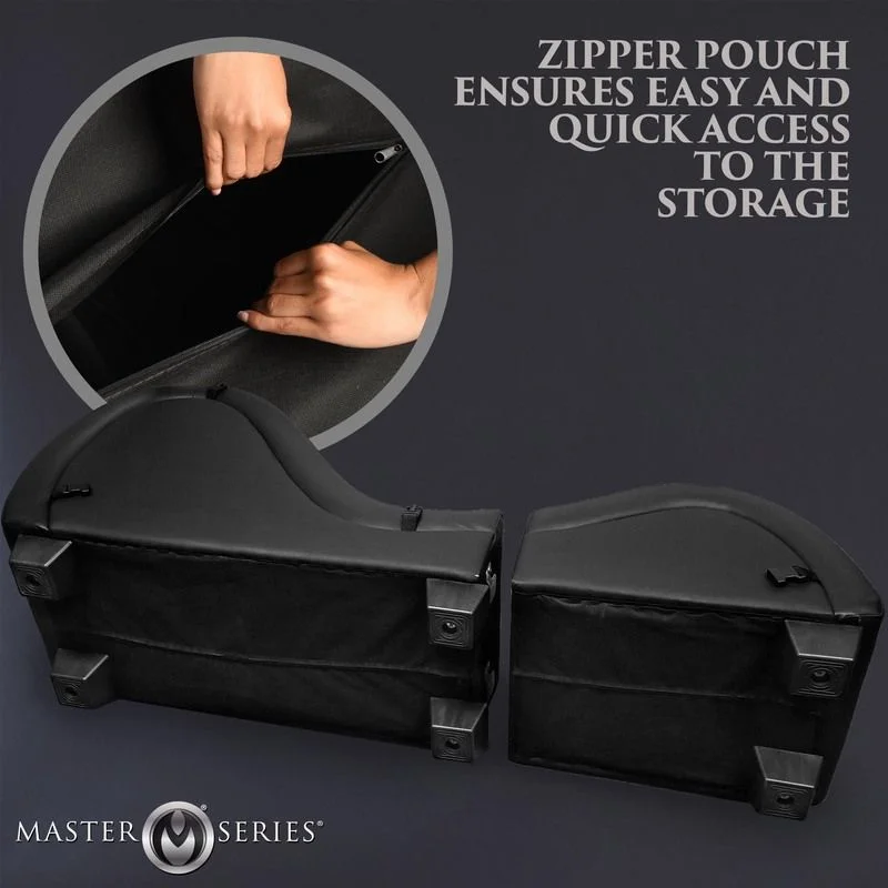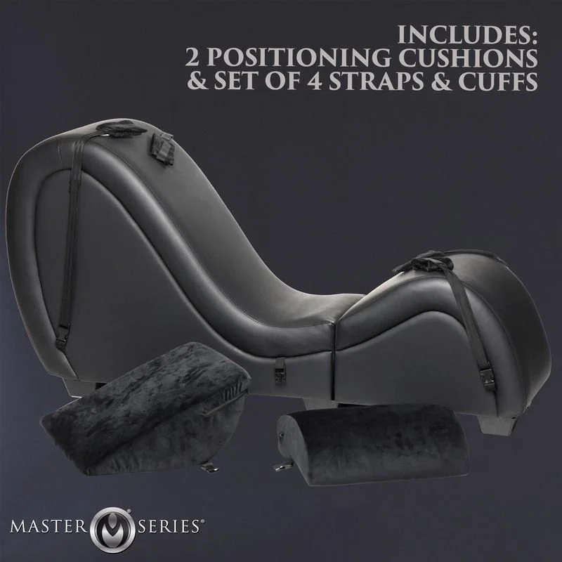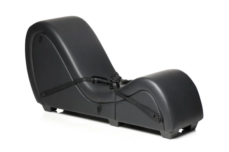 De bank is bekleed met hoogwaardig glad, veganistisch leer dat niet alleen duurzaam is, maar ook zacht aanvoelt op de huid. De twee meegeleverde kussens bieden uitstekende ondersteuning voor hoofd en borst en kunnen voor extra comfort gebruikt worden om op te zitten of te knielen. Dit maakt de lounge ideaal voor koppels die hun BDSM-avonturen willen intensiveren met comfort en luxe. De zachte pols- en enkelboeien, bevestigd aan nylon banden onder de bank, zijn gemakkelijk aan te passen en te verwijderen, wat zorgt voor zowel veiligheid als flexibiliteit tijdens het gebruik.