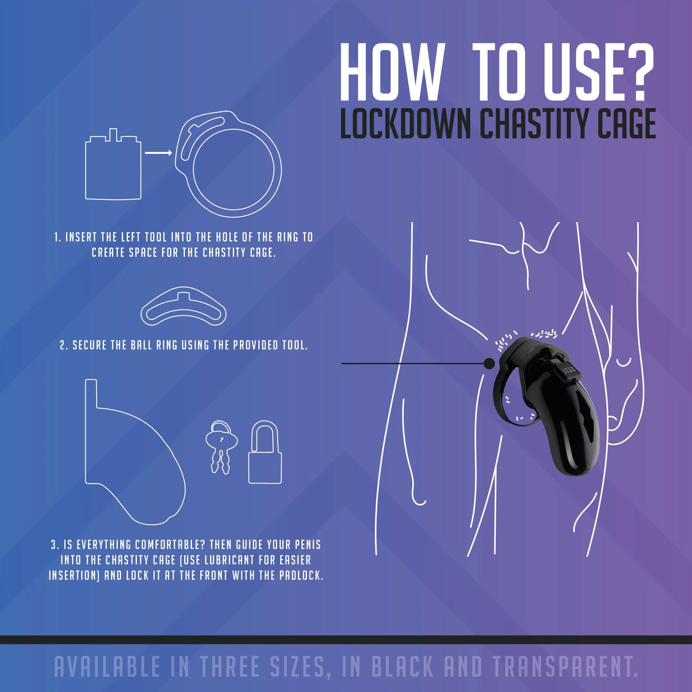 Naast functionaliteit biedt de Lockdown Kuisheidskooi ook extra zekerheid door middel van een metalen hangslotje met twee sleutels én vijf genummerde plastic hangslotjes. Dankzij deze genummerde slotjes kan de drager niet ongemerkt de kooi losmaken, wat bijdraagt aan het vertrouwen en de intensiteit binnen de dynamiek van het spel. De kuisheidskooi is waterdicht en makkelijk te reinigen, ideaal voor dagelijks gebruik of langere sessies. Let wel: het wordt aanbevolen de kuisheidskooi niet tijdens het slapen te dragen om ongemak en blessures te voorkomen.