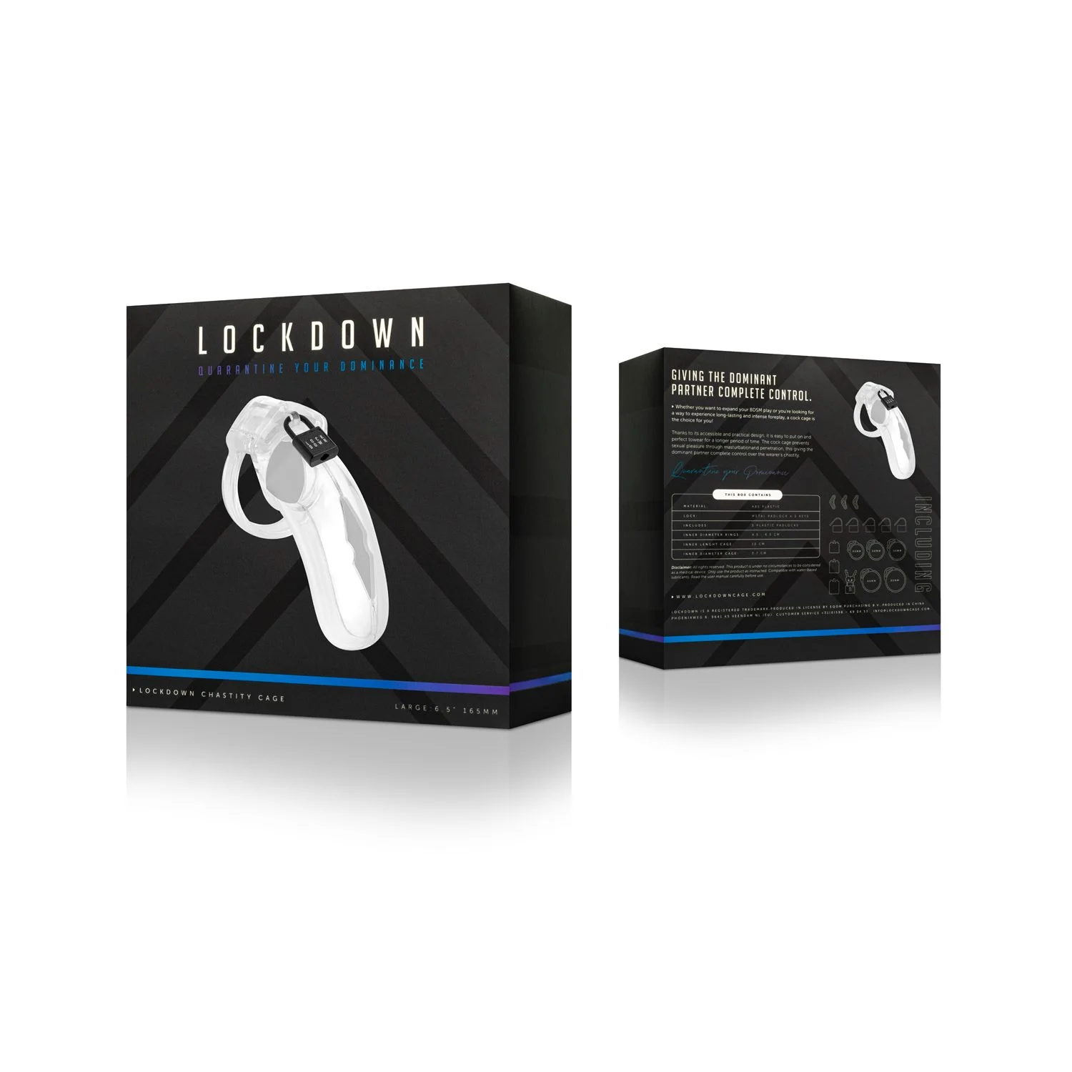 De Lockdown kuisheidskooi wordt geleverd met vijf verschillende ringen, variërend in maat van 4,5 tot 6,5 cm, zodat je altijd een perfecte pasvorm kunt vinden die zorgt voor optimaal comfort en veiligheid. Bij de set zitten zowel een metalen hangslotje met twee sleutels als vijf genummerde plastic hangslotjes. Deze plastic slotjes kunnen na gebruik doorgesneden worden om ongewenst openen tegen te gaan en om het vertrouwen binnen het spel te versterken. Let op: om ongemak en verwondingen te voorkomen, wordt geadviseerd de kuisheidskooi tijdens het slapen af te doen.