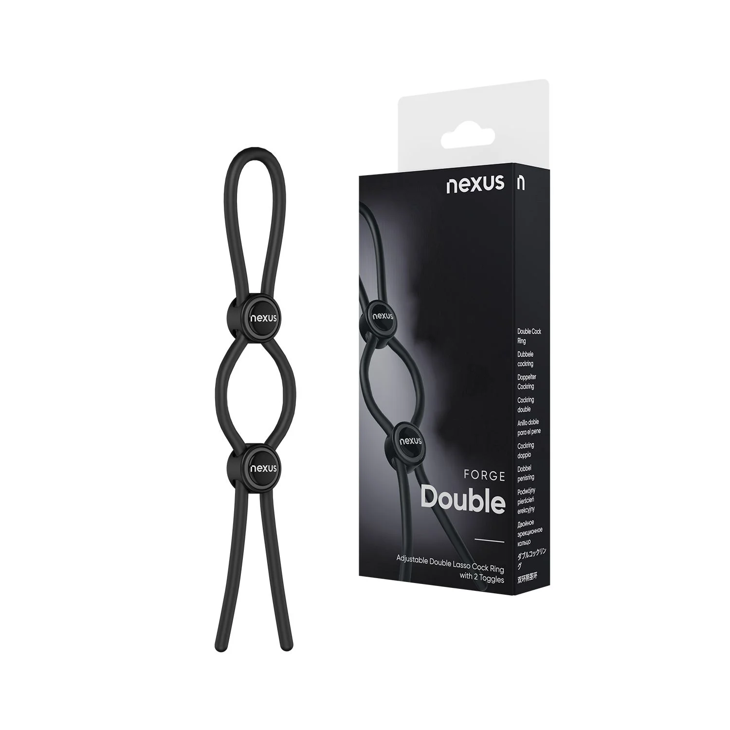 Productinformatie "Nexus Forge - Dubbele Verstelbare Penisring - Zwart"