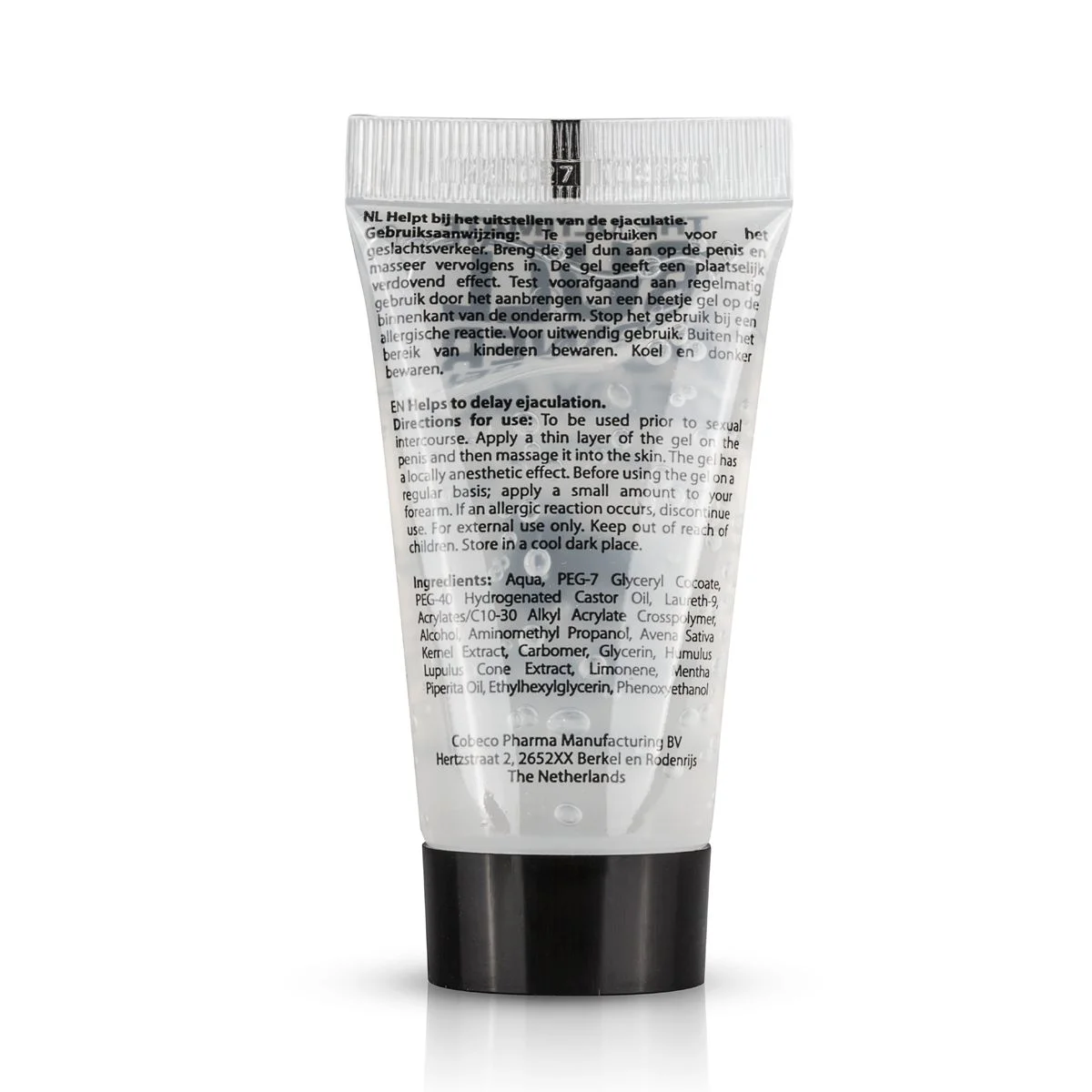Fijne gel, makkelijk aan te brengen. Verdoofd goed, waardoor orgasme uit te stellen is.