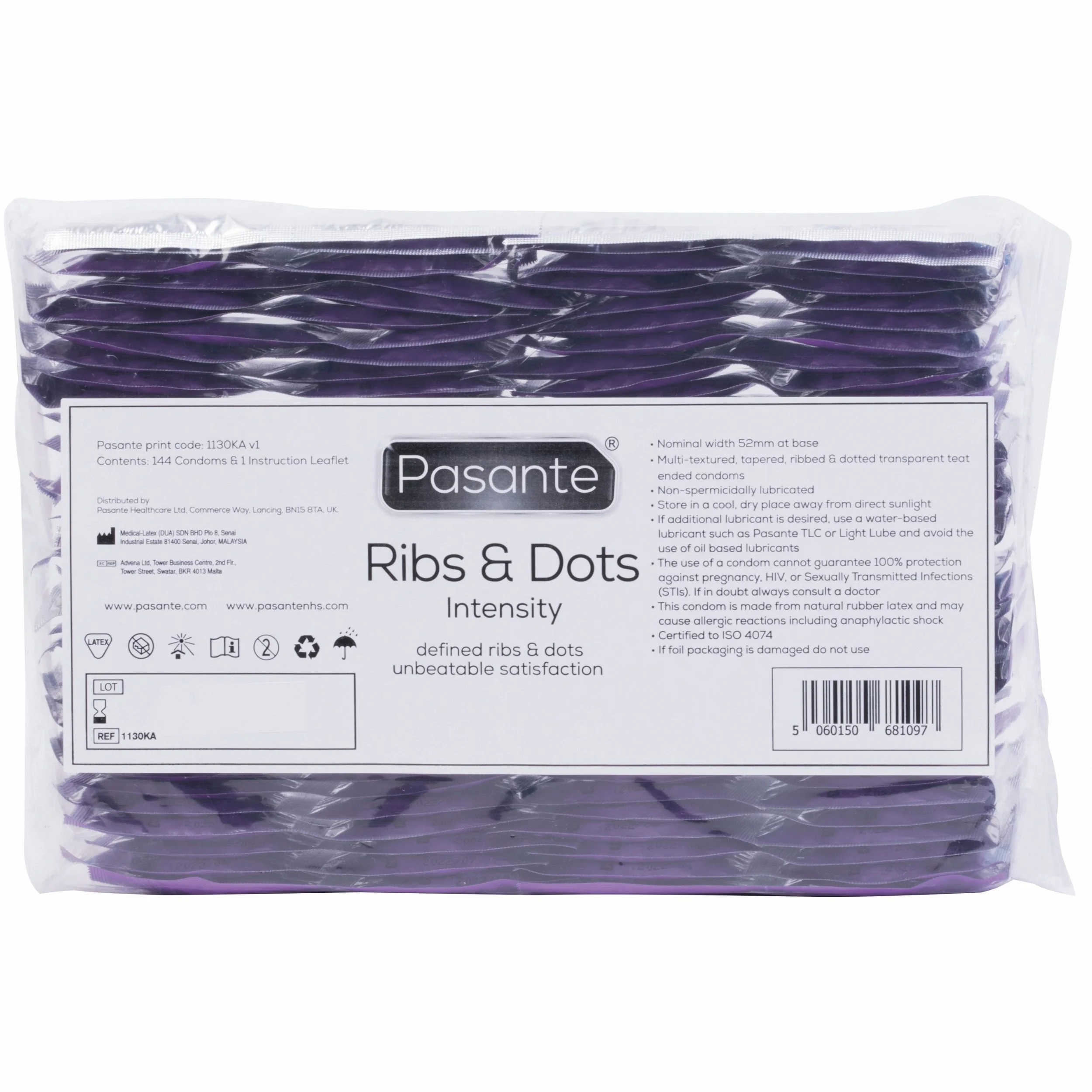 Productinformatie "Pasante Ribs & Dots Intensity Condooms - 144 stuks"