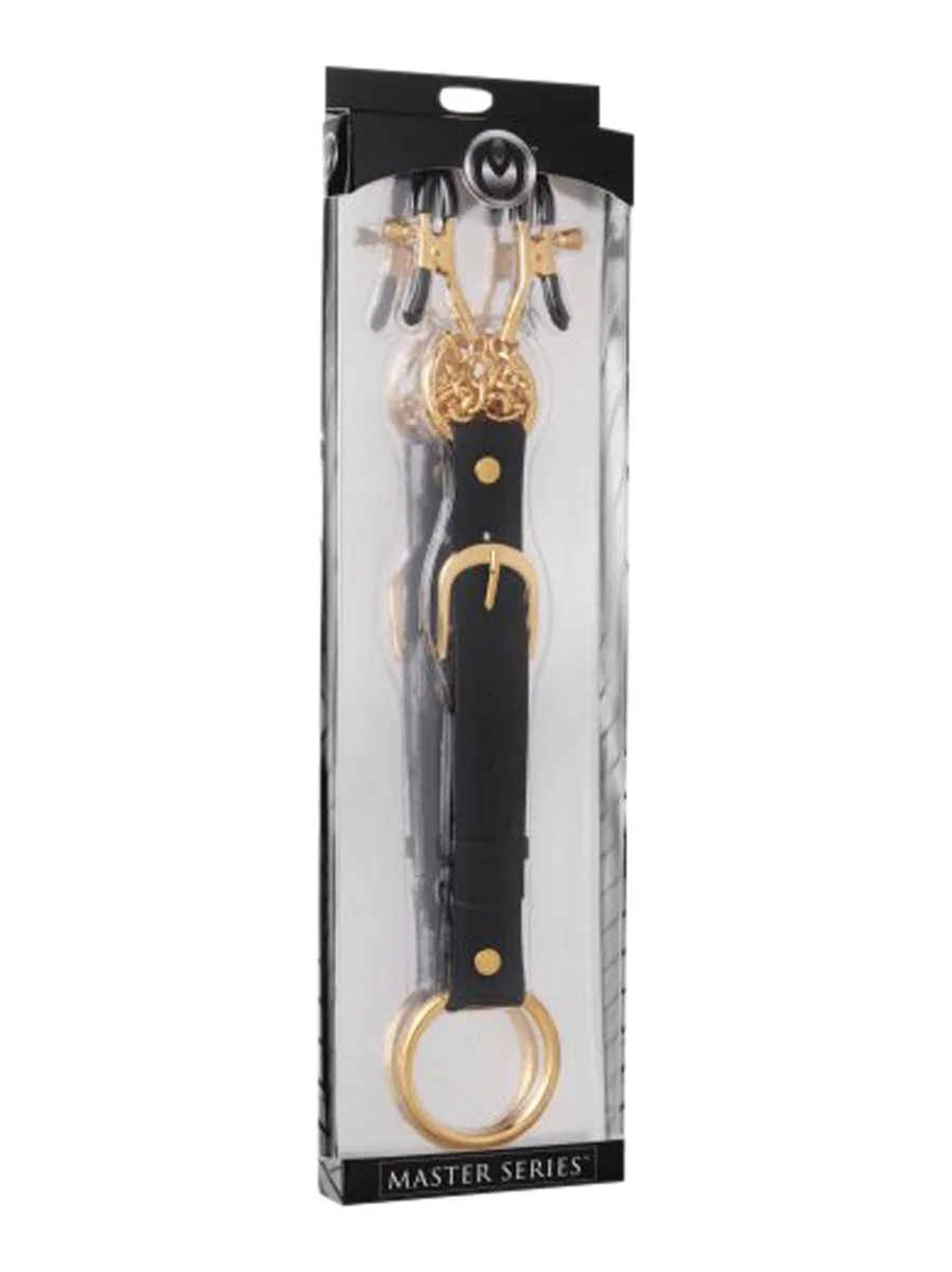 Deze cockring met tepelklemmen is een perfecte keuze voor koppels die hun seksuele spel willen uitbreiden met een spannende BDSM-touch. De cockring heeft een diameter van 4,5 cm en is ontworpen om comfortabel en stevig om de penis geplaatst te worden. Vanuit de verstelbare lederen band komt een alligatorstijl tepelklem die voor de juiste druk zorgt, afgestemd op persoonlijke wensen. Door deze combinatie worden niet alleen de genitaalstreek maar ook de tepels tegelijkertijd gestimuleerd, wat zorgt voor verhoogde prikkeling en een intensere seksuele beleving.