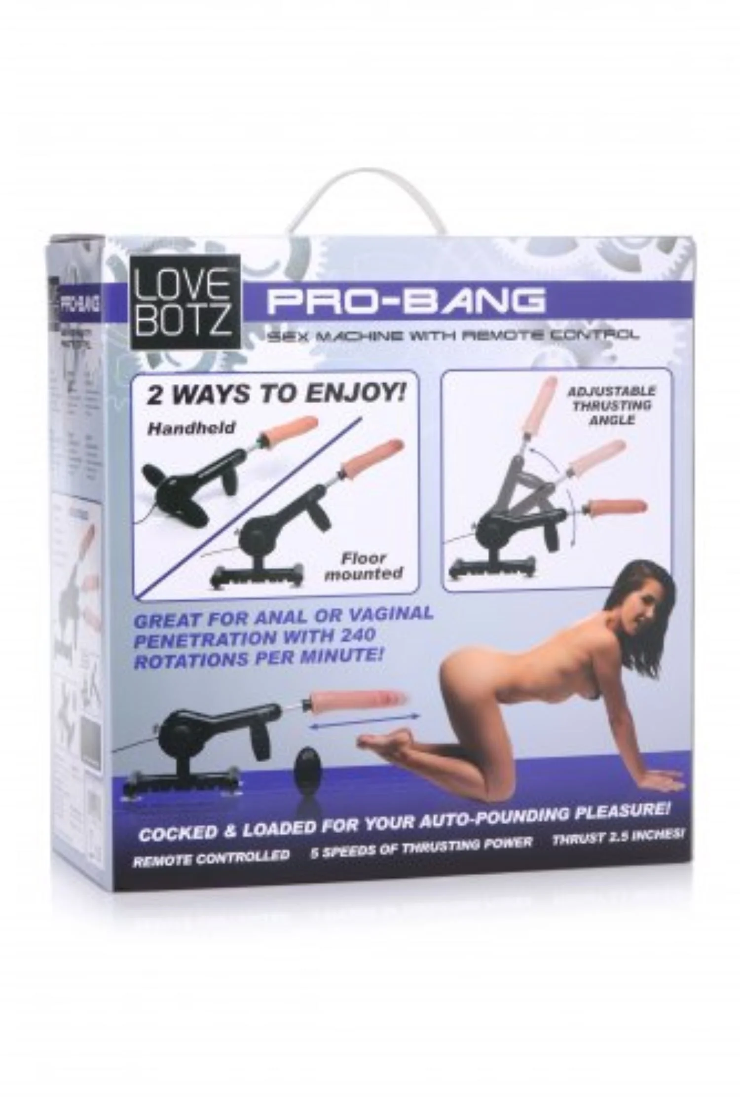 De bediening van de Pro Bang Seksmachine is gebruiksvriendelijk en flexibel. Je kunt kiezen uit vijf verschillende snelheidsstanden via de pushknoppen op het frame of de draadloze afstandsbediening. Zo bepaal je zelf eenvoudig de intensiteit en het tempo van de stoten. Naast solo gebruik is deze seksspeeltje ook uitstekend vast te houden door je partner, wat zorgt voor een extra dynamische en spannende ervaring. Dankzij het compacte formaat (457 mm lang, 304 mm breed en 29 mm hoog) en het duurzame ontwerp, is de Pro Bang een onmisbare toevoeging aan je collectie BDSM- of SM-speeltjes.