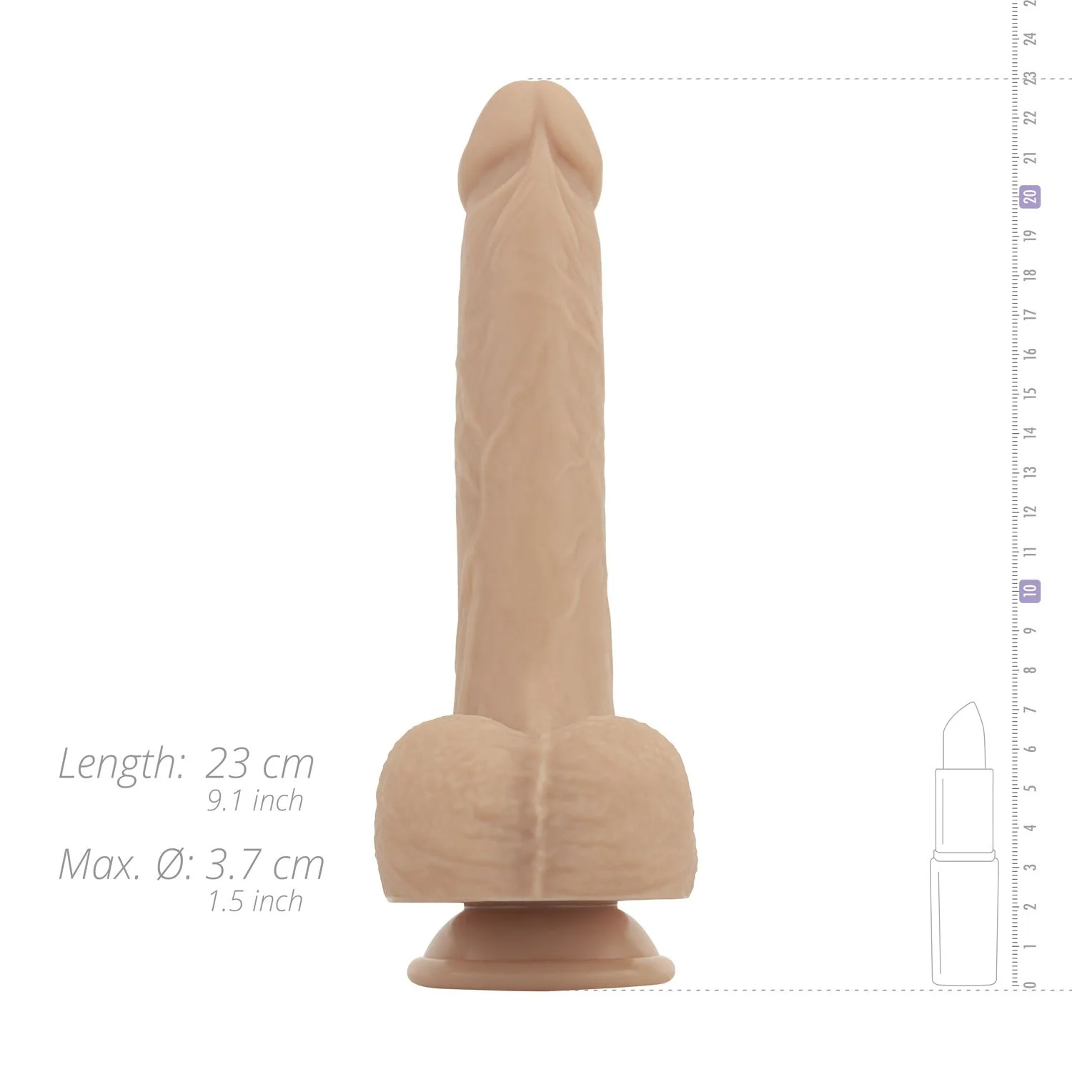 - Levensecht design met aderen, een duidelijke punt en balzak voor extra stimulatie