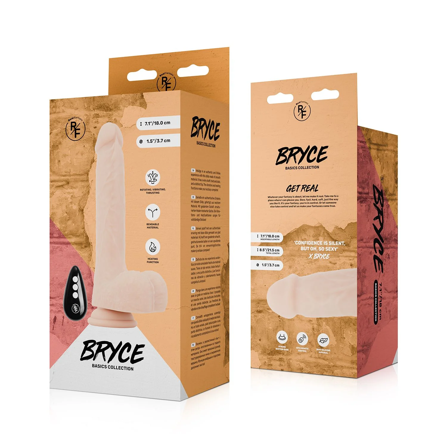 De Real Fantasy - Bryce Stotende, Verwarmbare en Vibrerende Dildo is een hoogwaardige vibrator die speciaal is ontworpen om je een levensechte en veelzijdige ervaring te bieden. Met een inbrengbare lengte van 17 cm en een maximale diameter van 37 mm, voelt Bryce verrassend realistisch aan dankzij de gedetailleerde aderlijke schacht, een duidelijke top en een zorgvuldig nagebootste balzak. Dit vermakelijke speeltje is ideaal voor beginners die de wereld van realistische dildo’s willen verkennen, maar ook geschikt voor gevorderde gebruikers die houden van veelzijdige functies.