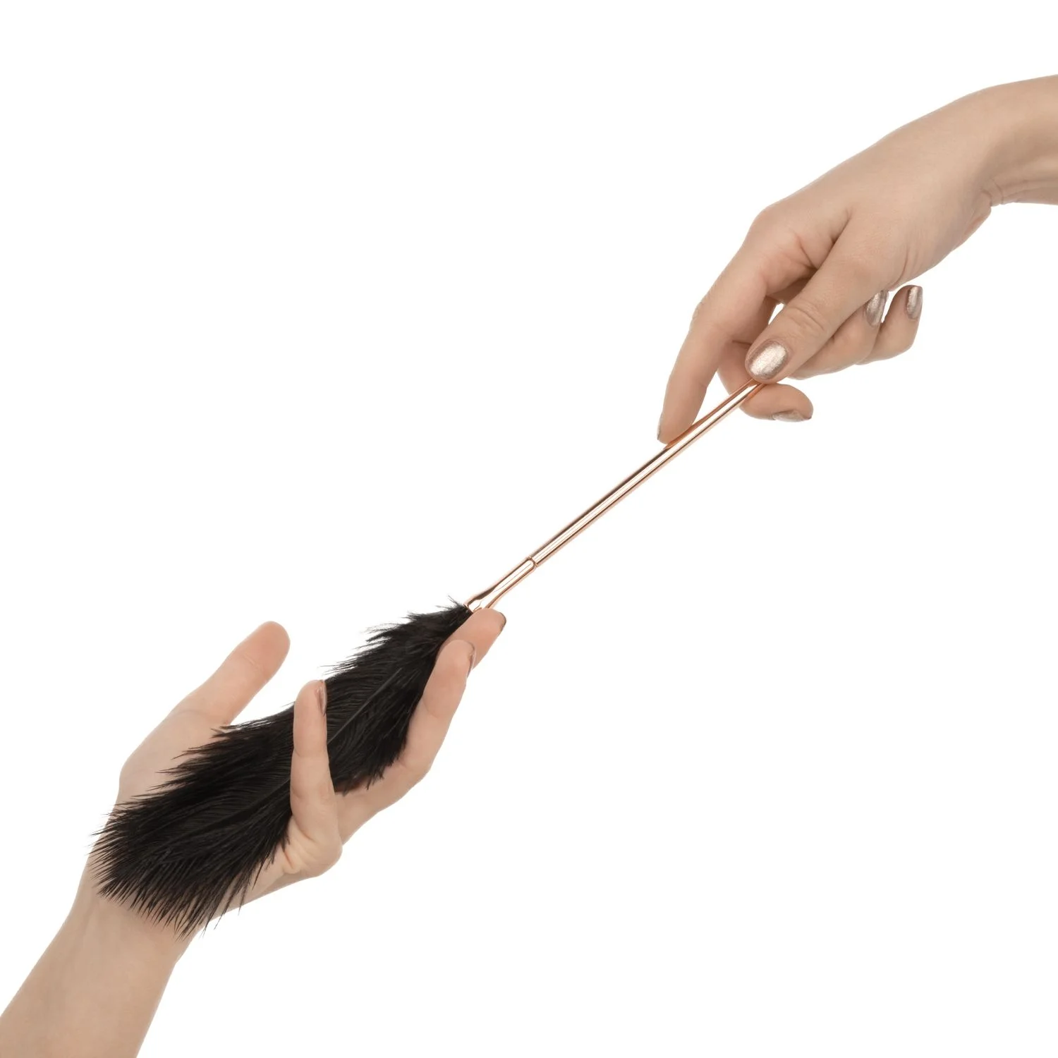 Met het elegante roségouden design is deze feather tickler en zweep niet alleen functioneel, maar ook een stijlvolle toevoeging aan iedere collectie intieme accessoires. Het is de perfecte keuze voor koppels die samen willen experimenteren en nieuwe grenzen willen verkennen, evenals voor solo-gebruikers die op zoek zijn naar veelzijdigheid en kwaliteit. Door de combinatie van zachte aanrakingen en speelse tikken ontstaat een levendige en spannende ervaring die uitnodigt tot creativiteit en zelfontdekking.