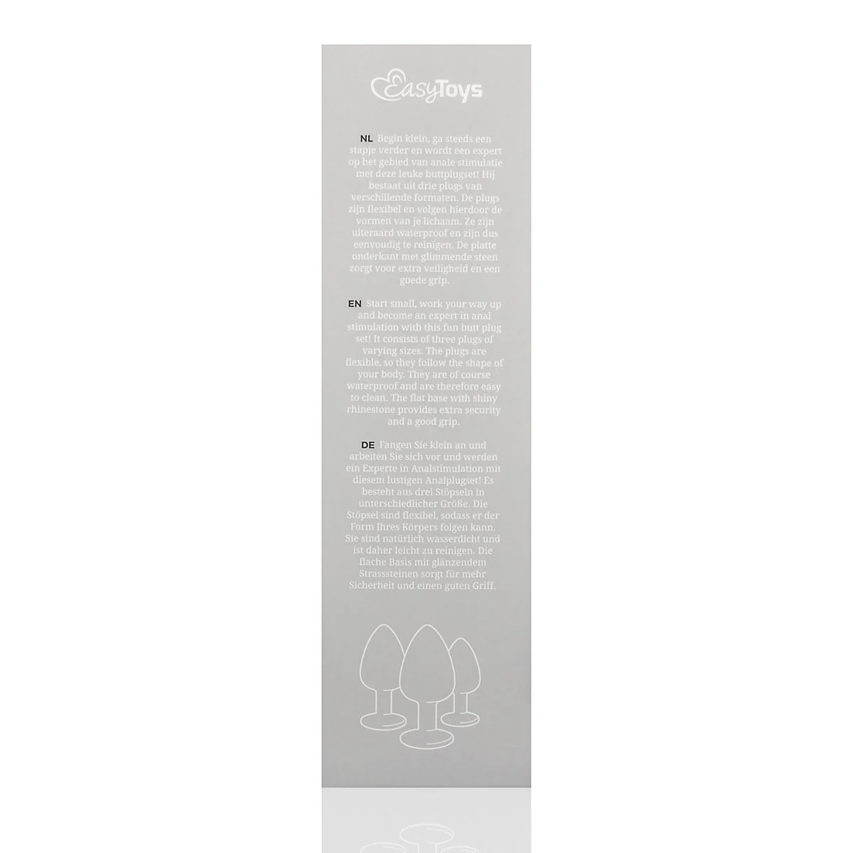 De set bestaat uit drie buttplugs met verschillende afmetingen, zorgvuldig ontworpen om aan jouw behoeften te voldoen. De platte onderkant is verrijkt met een schitterende roze diamant, die niet alleen een opvallend en stijlvol accent geeft, maar ook zorgt voor een veilige grip tijdens het gebruik. Door het waterdichte ontwerp is schoonmaken gemakkelijk en hygiënisch, en kun je de buttplugs zelfs in bad of onder de douche gebruiken. Voor het beste gebruik adviseren we een glijmiddel op waterbasis. Hiermee wordt de penetratie soepeler en lekkerder, waardoor de ervaring nog aangenamer wordt.