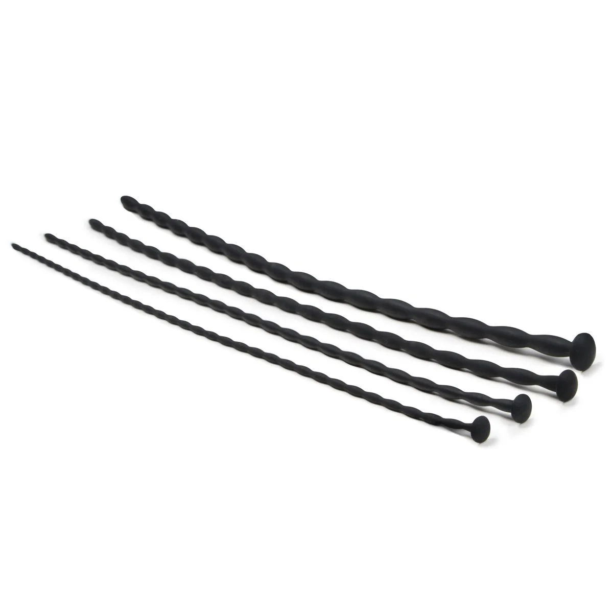 De Siliconen Dilator Set - Small van Sinner Gear is de ideale accessoire voor mannen die met precisie en comfort nieuwe grenzen willen verkennen. Deze complete set bestaat uit vier dilators met oplopende diameters van 2 tot 5 millimeter, die samen een totale lengte van 30 centimeter hebben. Elk exemplaar is ontworpen om zacht en flexibel te zijn dankzij het hoogwaardige siliconenmateriaal, wat zorgt voor een aangename en veilige ervaring tijdens het gebruik.