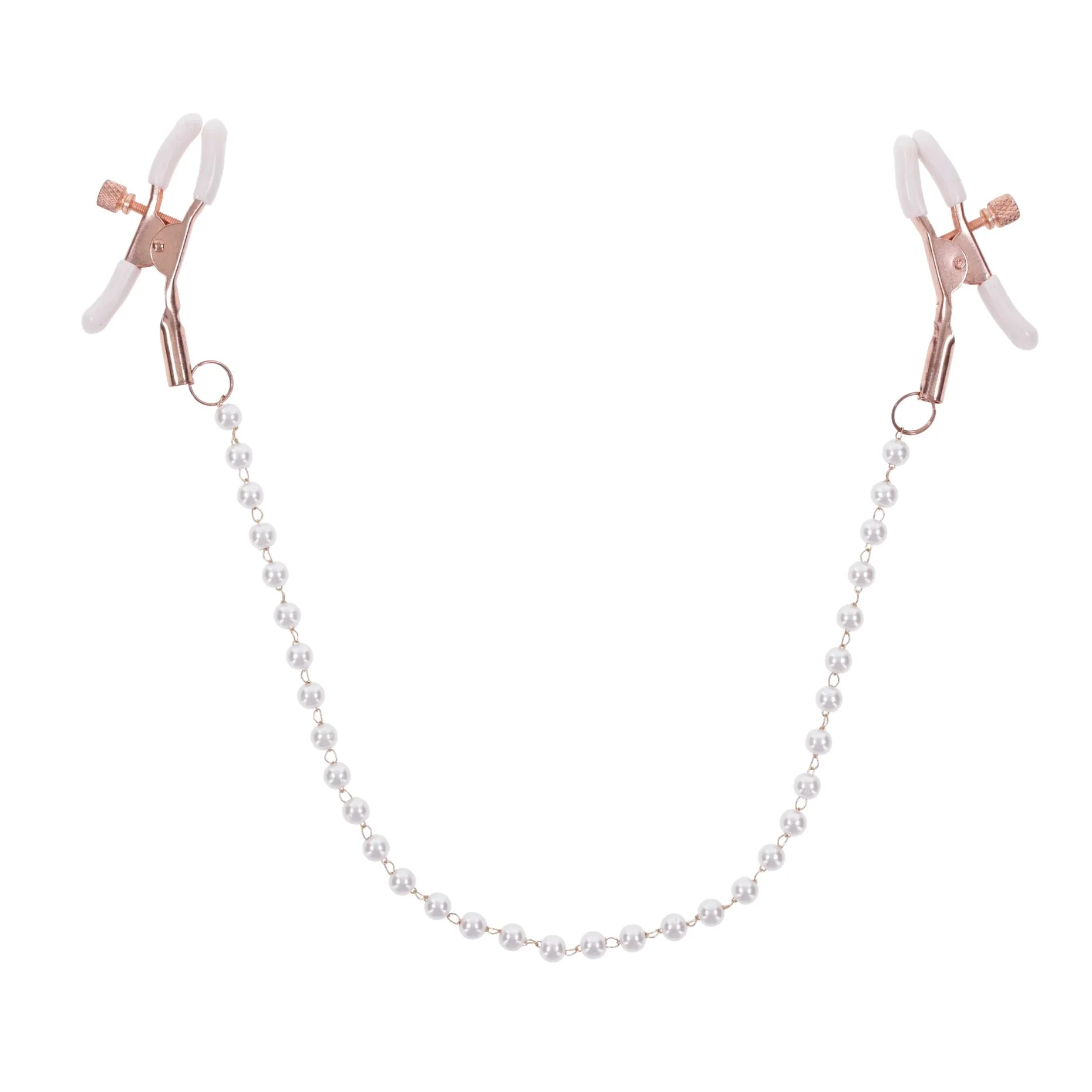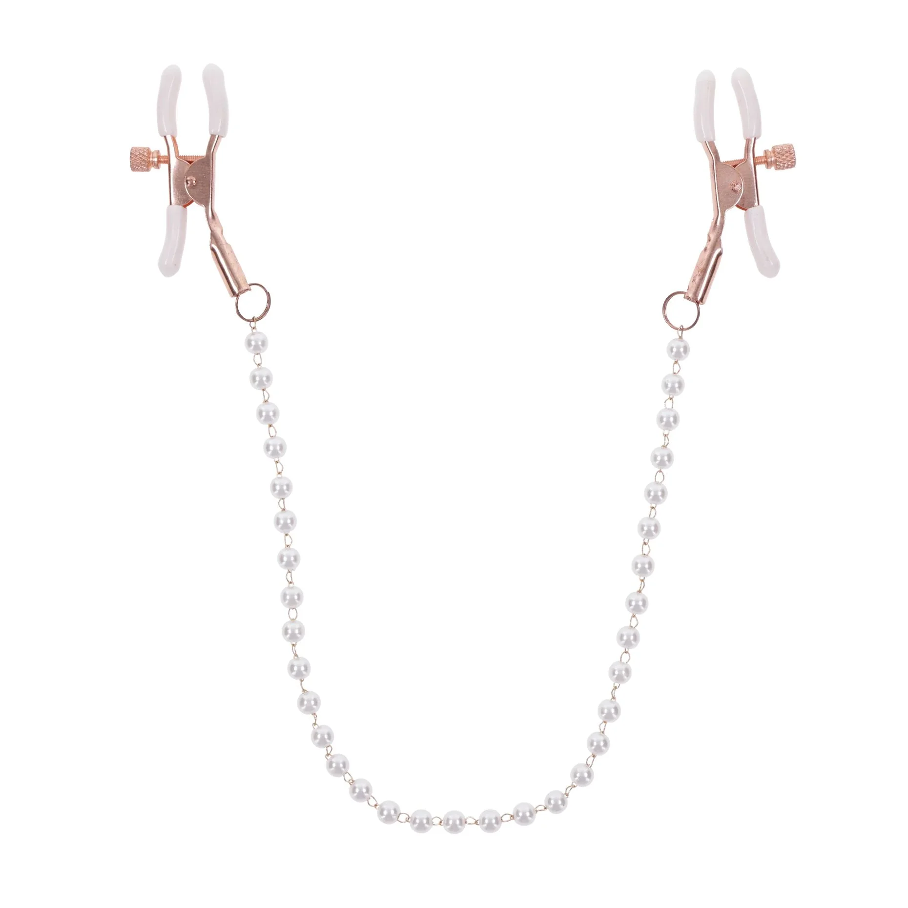 De zachte witte rubberen tips zorgen voor extra grip en beschermen tegelijkertijd de huid, zodat je onbeperkt kunt spelen zonder zorgen. De parelversierde ketting die de twee klemmen verbindt, voegt een speels en chique element toe aan jouw bondage-ervaring. Dit stijlvolle accessoire past perfect bij elke erotische setting en verhoogt de gevoeligheid van je tepels, waardoor elke aanraking intenser voelt.