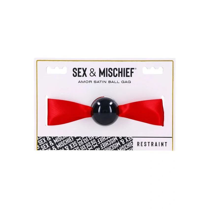 Ontdek de verfijnde spanning van de Sportsheets - Sex & Mischief Amor Satin Ball Gag, een intiem product dat speciaal is ontworpen voor liefhebbers van BDSM en bondage die comfort en stijl willen combineren. Deze luxueuze ball gag vangt de essentie van verlangens en dominantie in een elegant ontwerp. Het zachte, zwarte mondstuk zorgt voor aangenaam draagcomfort, terwijl het flexibele satijnen lint een sensuele uitstraling geeft. Met een lengte van 46 inch kan het lint prachtig langs het lichaam gedrapeerd worden, wat elke speelse sessie een extra vleugje verfijning en erotiek schenkt.