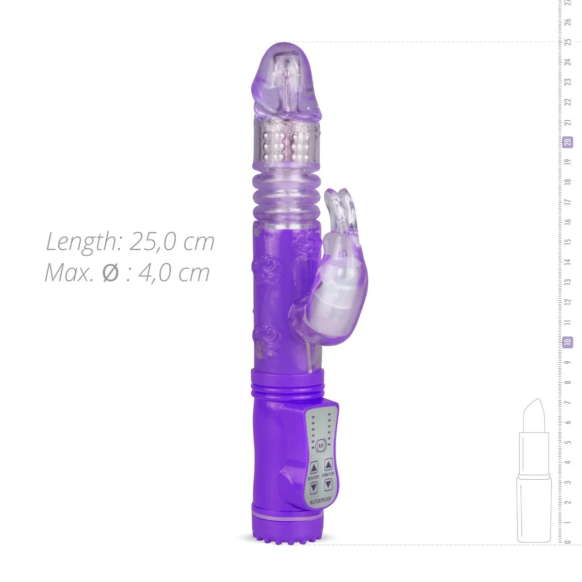 De Stotende Rabbit Vibrator - Paars van Vibe Collection is de perfecte keuze voor dames die houden van intense, veelzijdige stimulatie. Met een lengte van 25 cm en een flexibele, ergonomische vorm biedt deze paarsgekleurde vibrator een combinatie van stotende bewegingen en roterende kralen om zowel de clitoris als de G-spot te prikkelen. Dankzij het ontwerp dat zich flexibel aanpast aan jouw lichaam, is penetratie moeiteloos mogelijk met een invoerdiepte van 13 cm en een diameter variërend van 30 tot 40 mm. Dit maakt de vibrator ideaal voor gevorderde gebruikers die hun grenzen willen verleggen en nieuwe sensaties willen ontdekken.