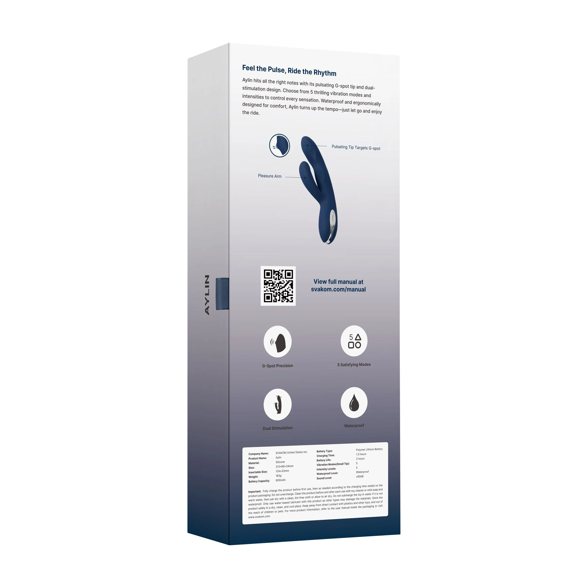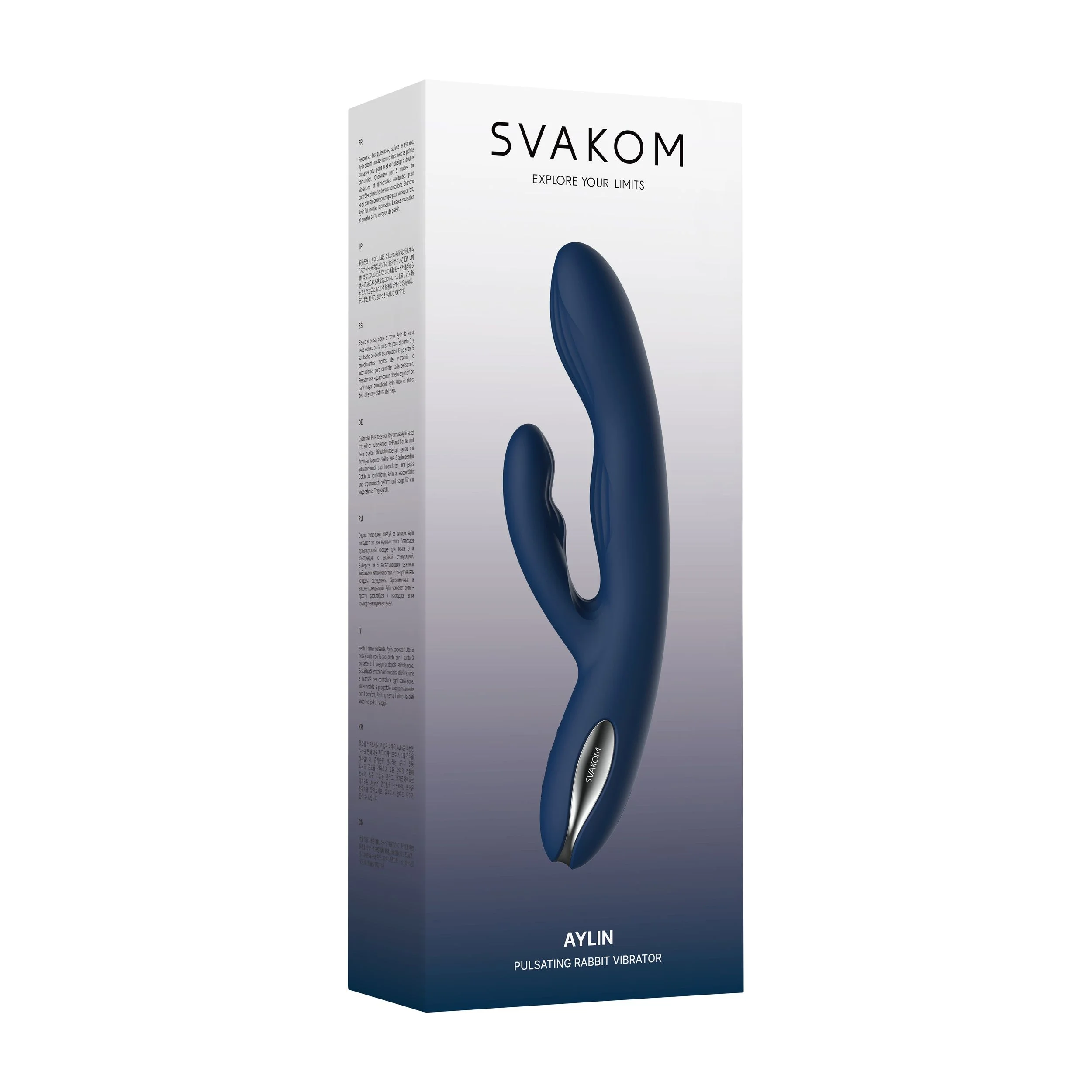 Productinformatie "Svakom - Aylin Krachtige Pulserende Vibrator met Twee Koppen - Donkerblauw"