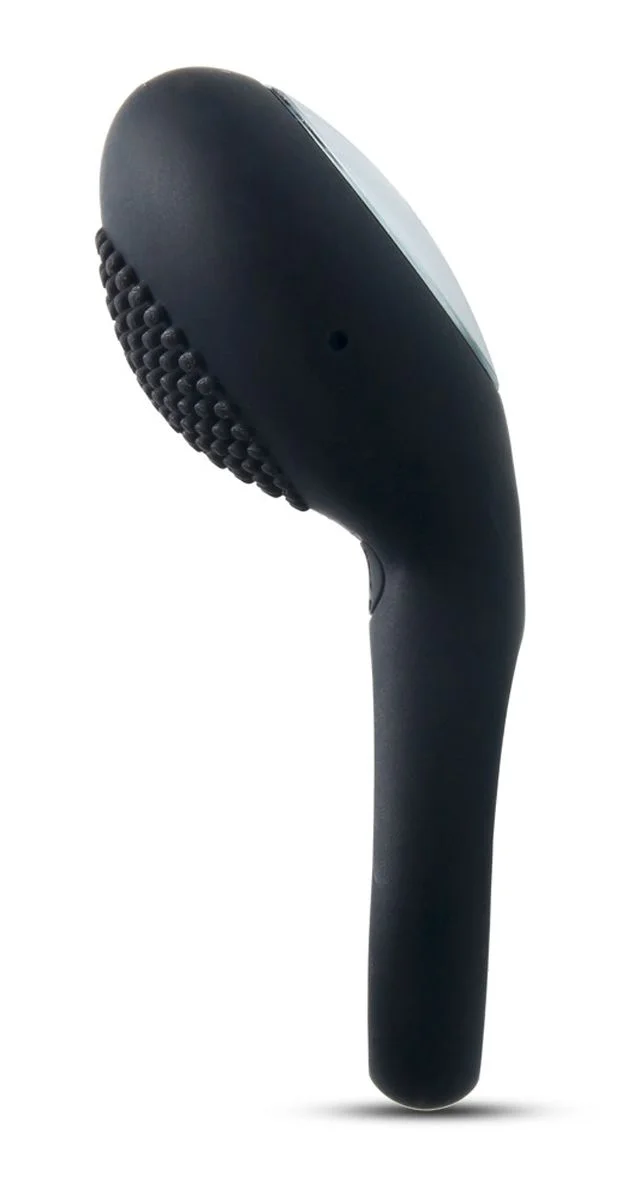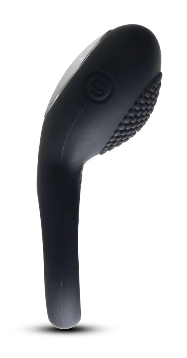Dan is er de bediening. En die vind ik dus heel er slim! Die is gelijk aan de bediening van andere Svakom producten. Als je het ‘S’ knopje aan de zijkant een paar seconden indrukt, begint de Tyler op de middelste constante trilstand te vibreren. Elke keer als je op het knopje drukt, ga je naar de volgende snelheid. Na de hoogste snelheid ga je terug naar de laagste. Zo klik je door vijf verschillende snelheden. Als je ‘dubbelklikt’ op de ‘S’ knop, dan ga je naar een ander patroon. Elke keer dat je dubbelklikt verander je van patroon. Er zijn ook weer vijf patronen (inclusief de constante trilling). Elk patroon kun je in snelheid veranderen door één keer te klikken. Ik vind dat dus erg slim bedacht. Met slechts één knopje, toch zo veelzijdig. En als je niet van trilpatronen houdt, dan hoef je daar ook niet doorheen te klikken. Geweldig! Tenminste … op het droge. Want tijdens de intimiteit is het best lastig om dat knopje te vinden. En één keer klikken gaat nog wel, maar dat dubbelklikken (met je hand tussen twee lichamen in) is nog best een uitdaging. Voor je het weet wil je twee keer klikken, maar deed je dat toch maar één keer, waardoor je niet naar een ander patroon gaat, maar naar een andere snelheid.
