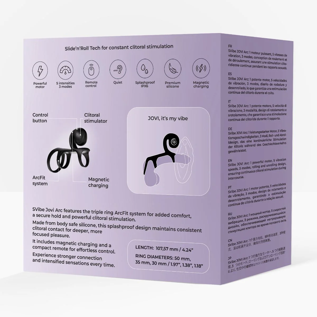 Dankzij de verfijnde kromming van de Jovi Arc blijft de vibrerende ring tijdens de penetratie continu in contact met de clitoris, wat zorgt voor een gelijkmatige stimulatie die het samenspel tussen partners versterkt. Het zachte, medische siliconen materiaal voelt zijdezacht aan en biedt een aangename en veilige pasvorm voor langdurig gebruik. Met zijn flexibele maar stevige structuur sluit de ring perfect aan zonder ongemakkelijk te zijn, ideaal voor koppels die samen nieuwe sensaties willen ontdekken.